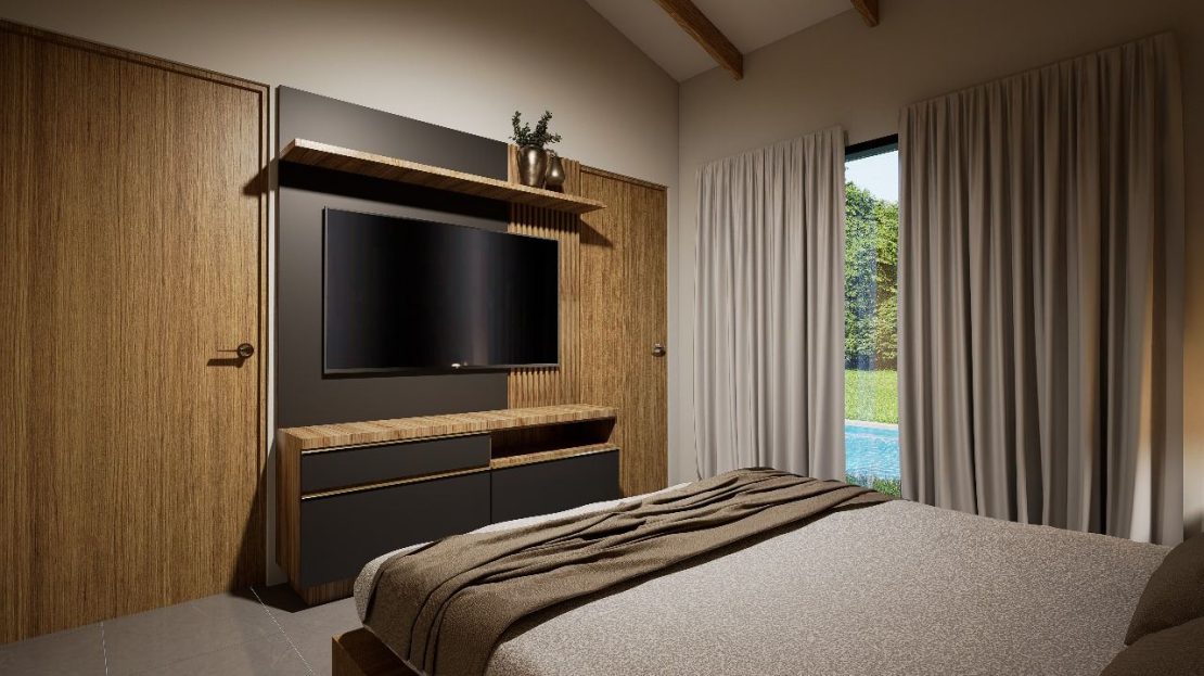 La casa cuenta con piscina privada y una cuota de mantenimiento baja.