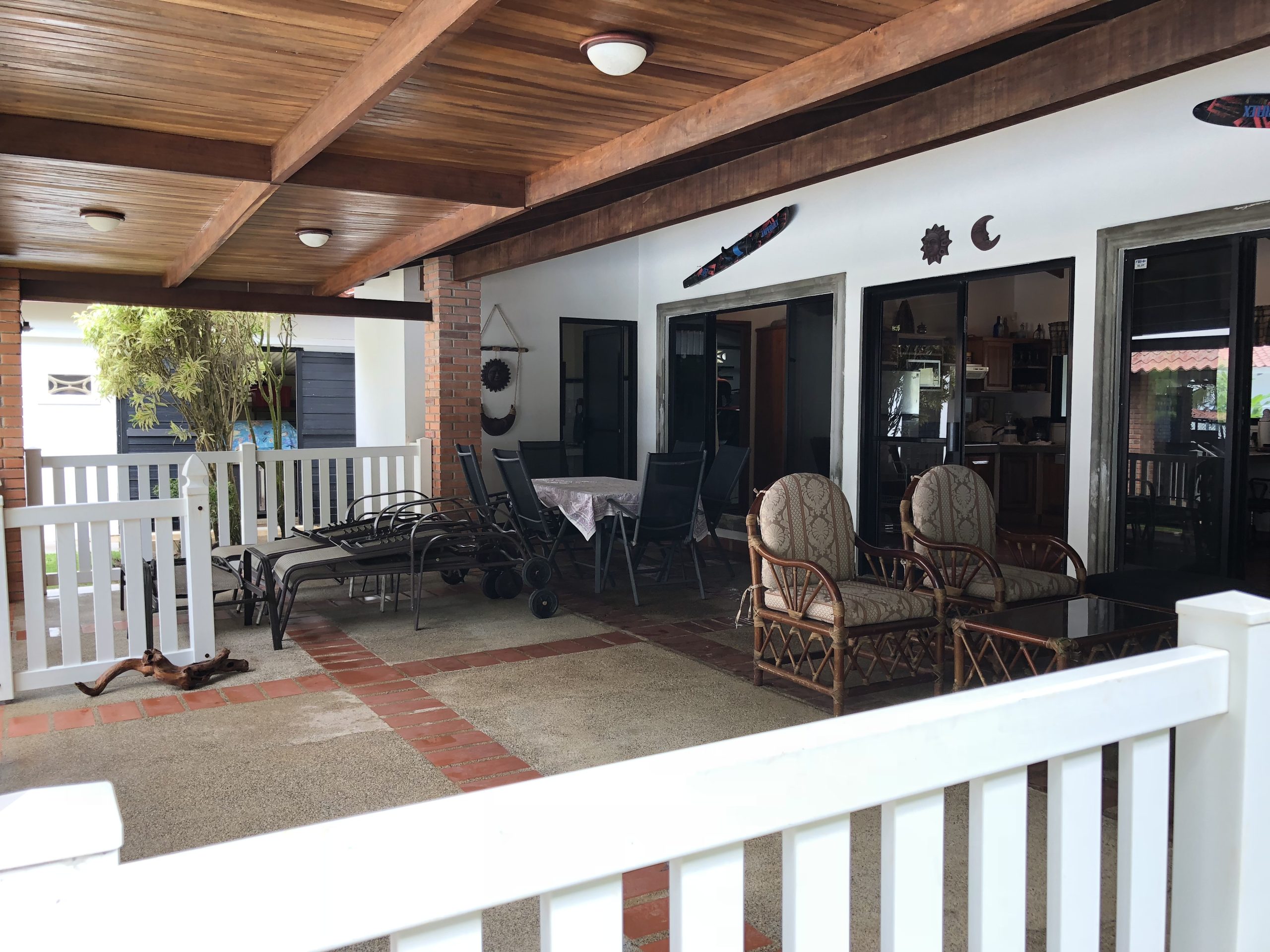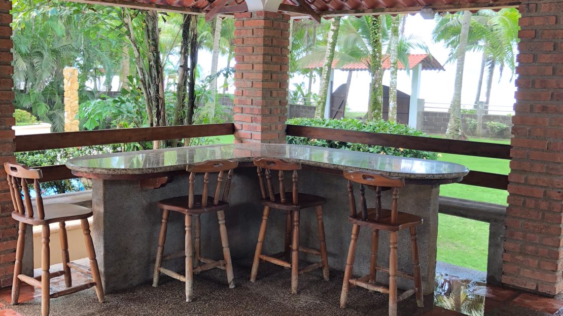 Beautiful, beachfront property with very comfortable two bedroom home, separate sleeping quarters for ten, two garages and a caretakers cottage. Spacious covered outdoor patio overlooking the swimming pool and beach. This home is built for entertaining. Located on oversized lot with lots of green area, and privacy walls, gated with more room to build. Steps away from the beachfront Alma hotel, restaurant and spa, and two other hotels with restaurants, and five minutes to a grocery store and more restaurants! Only 45 minutes to Manuel Antonio to the south and 20 minutes to Jaco to the north, 1 1/2 hours to San Jose. This is a beach lover’s paradise with miles of beach to walk in either direction and sunsets to die for!