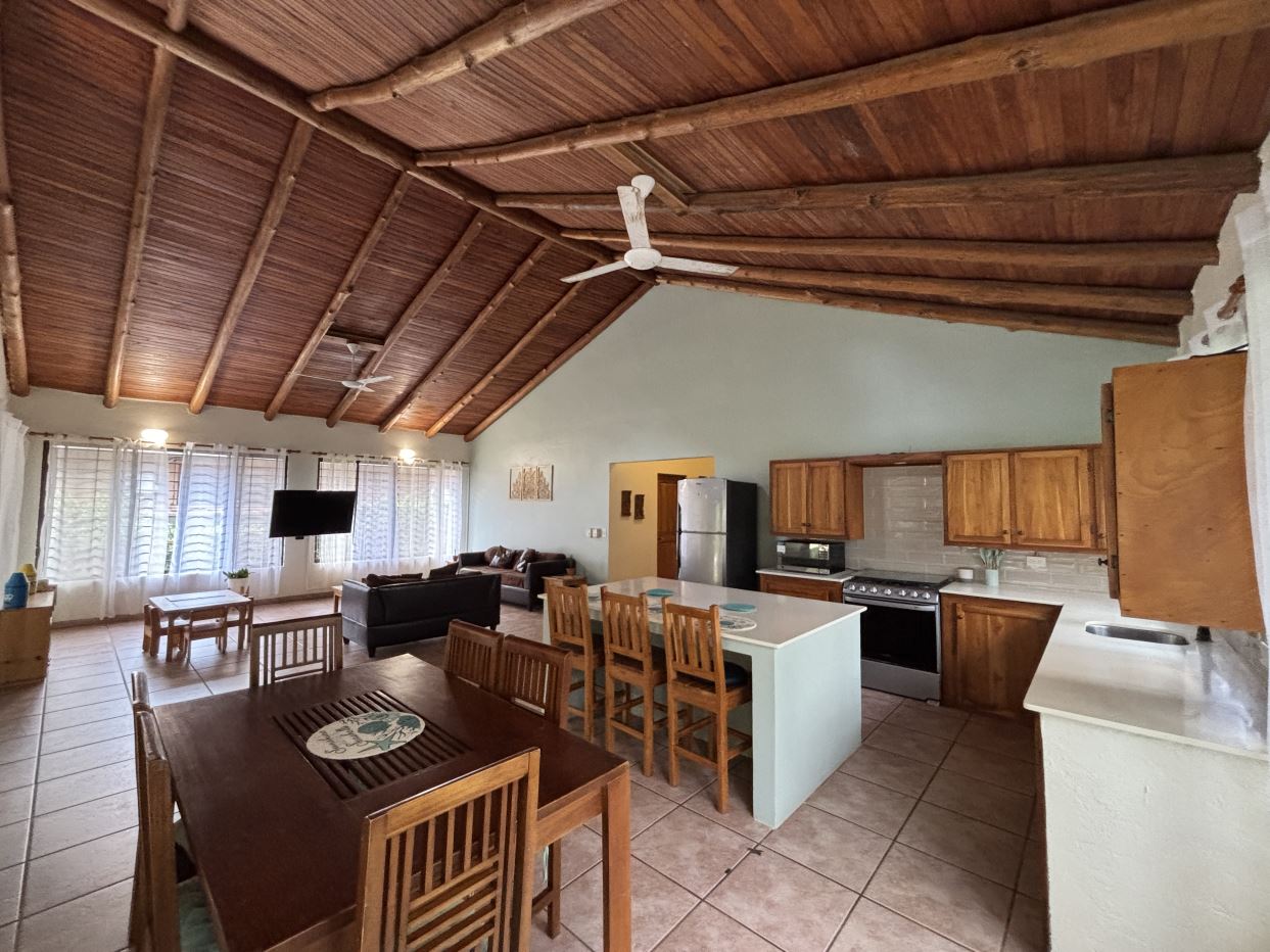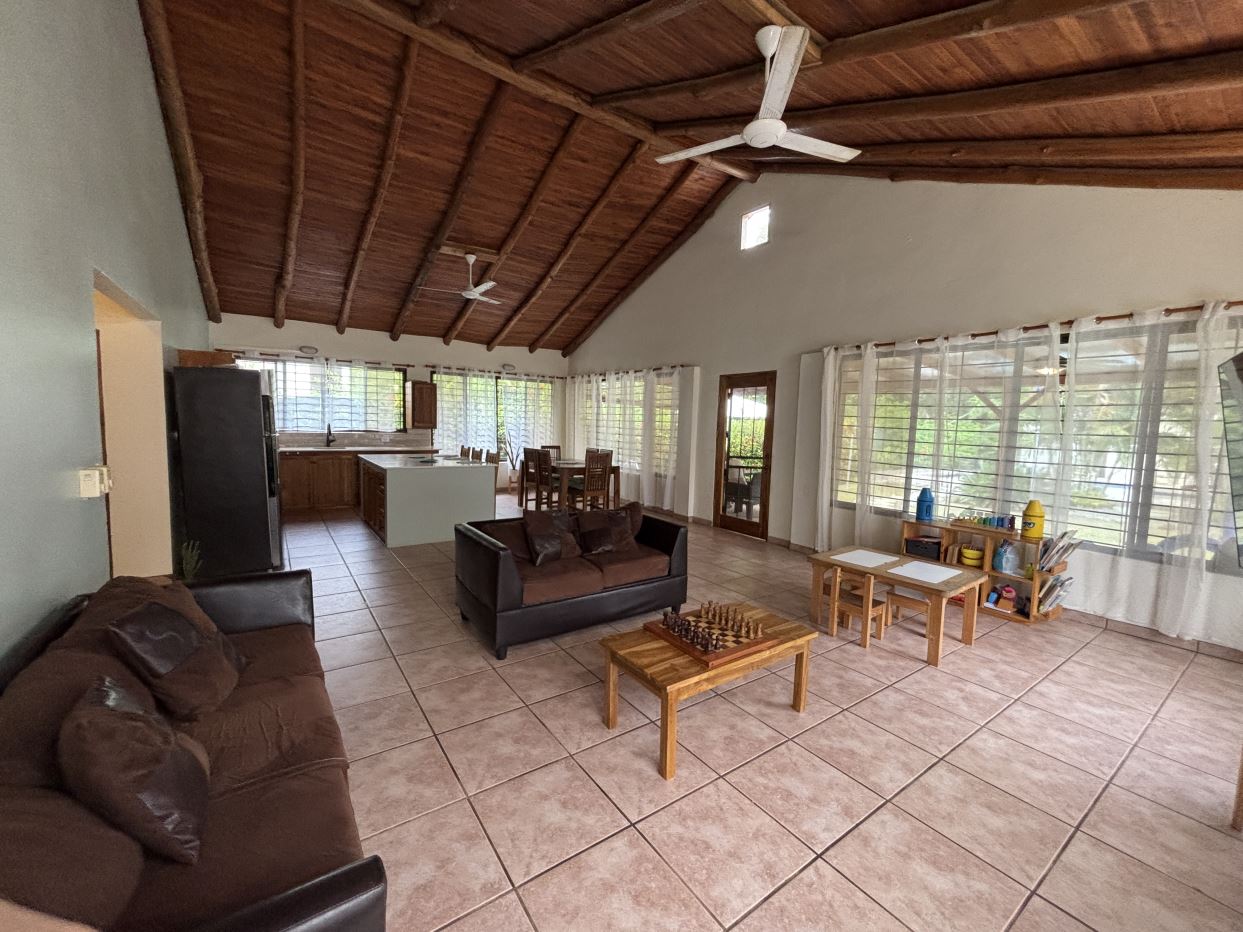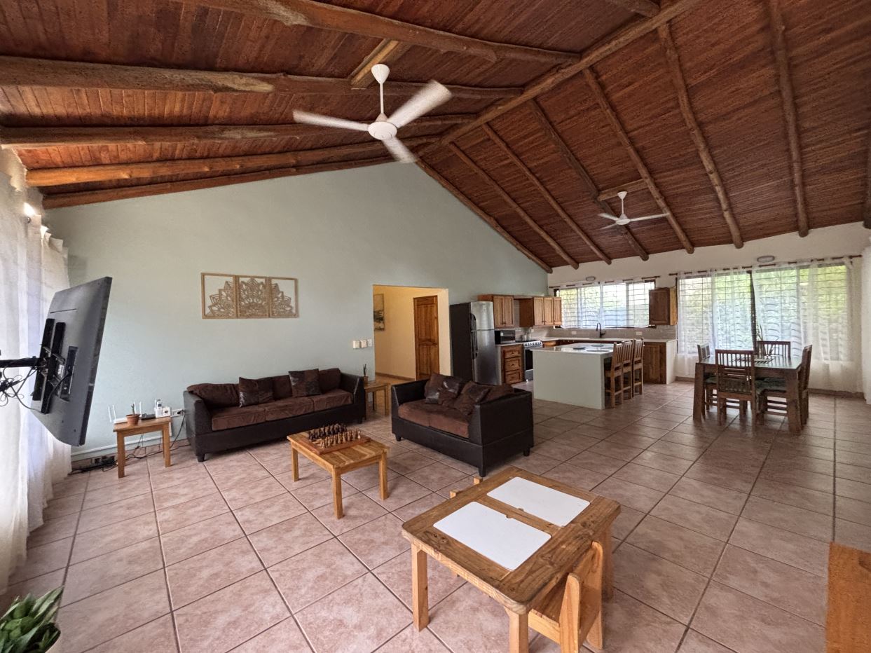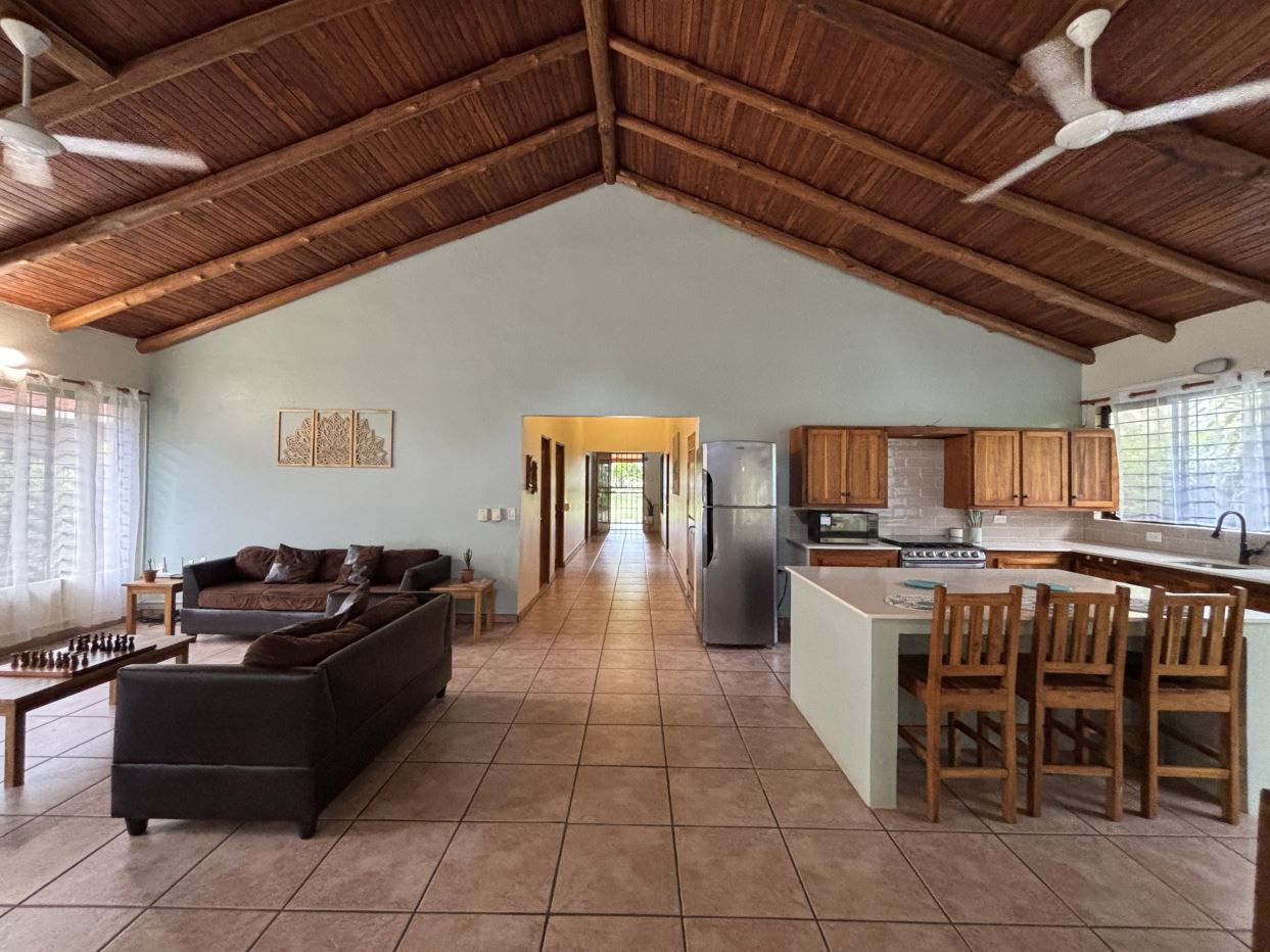 Cocina y Sala de Estar de Concepto Abierto – techos altos de madera, excelente iluminación y un diseño acogedor