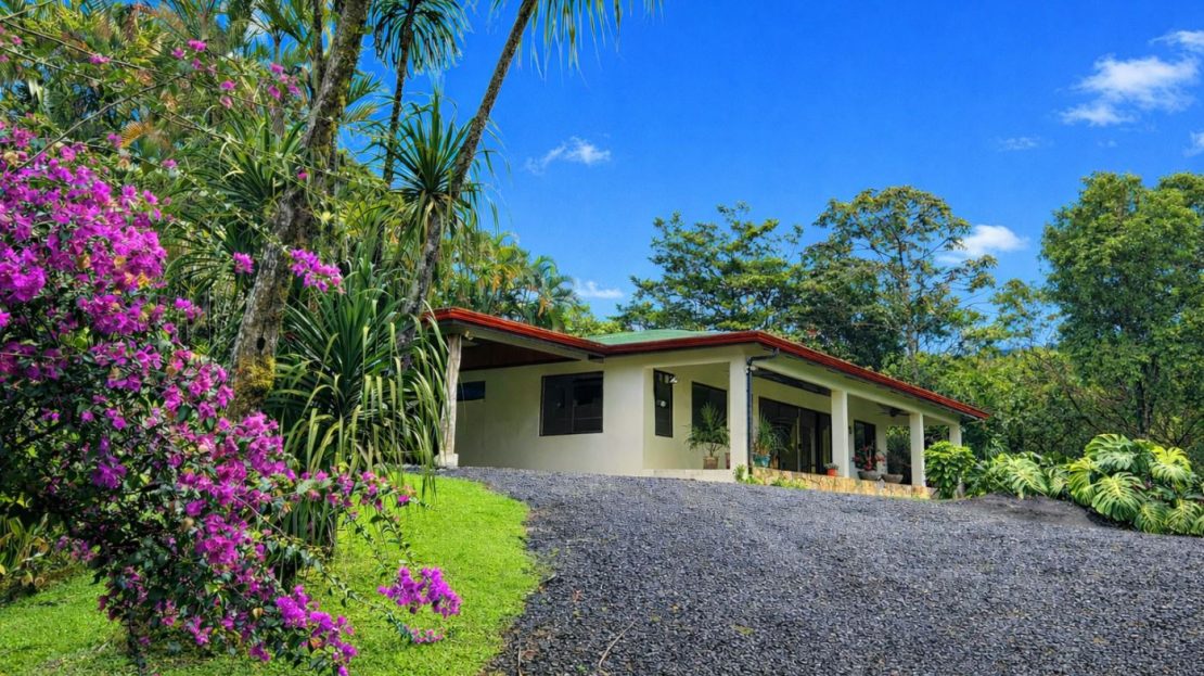 Situated within the serene lakeside community of El Aguacate on Lake Arenal in Guanacaste, this stunning one-level, three-bedroom, two-bathroom home, set on just over two acres, offers an ideal balance of privacy, convenience, and natural beauty. Thoughtfully positioned on a slightly elevated setting, the property benefits from enhanced views of Lake Arenal and its majestic volcano, the surrounding mountains, gentle breezes, and a heightened sense of tranquility, creating a strong connection to the surrounding landscape.