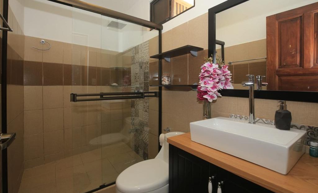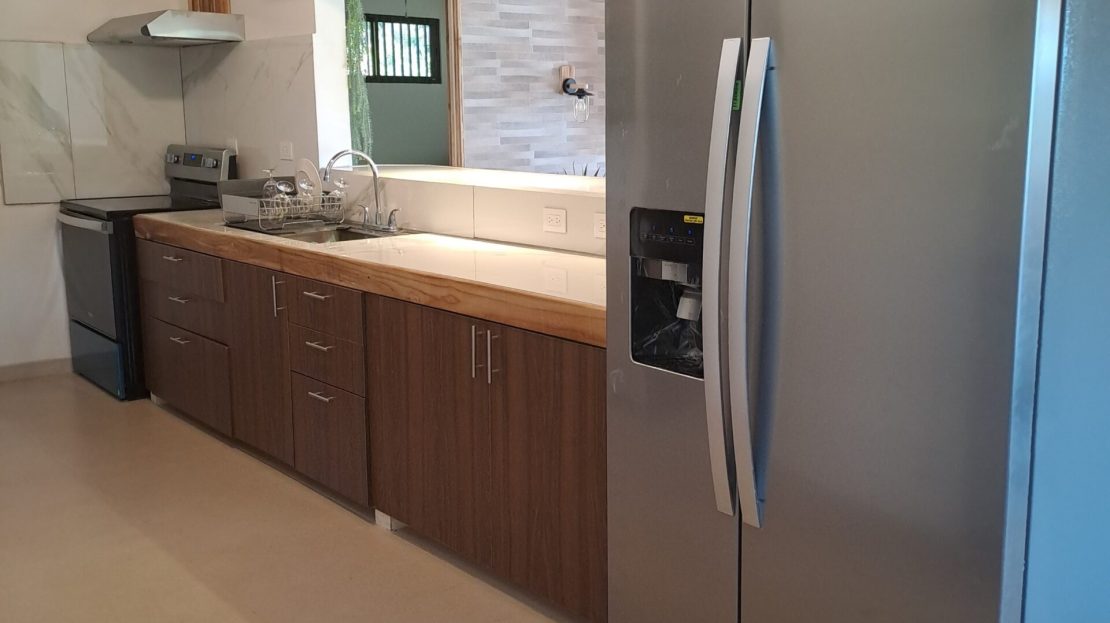 Posee una casa recién remodelada con un área total de 130 m2, distribuida en una sola planta la casa cuenta con un dormitorio principal con baño incorporado, 2 dormitorios adicionales que comparten un baño completo, área de cocina, comedor y una sala de estar con puertas de vidrio que conectan a una amplia terraza de 60m2 que contiene un jacuzzi, un baño completo y un área de BBQ, parqueo bajo techo y un área de lavado independiente de la casa.