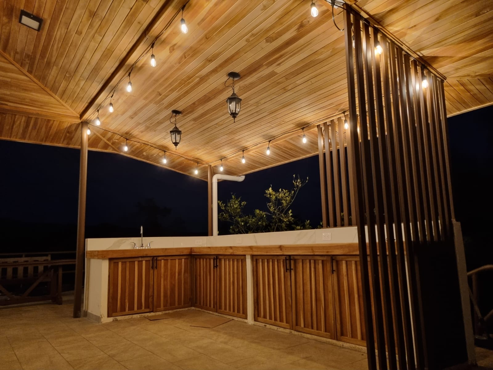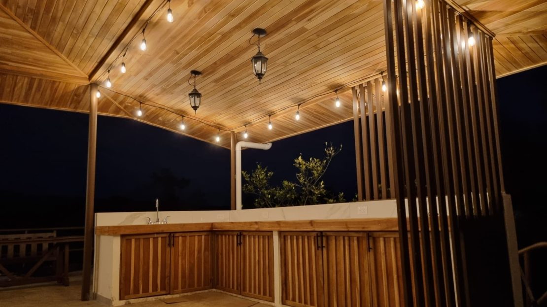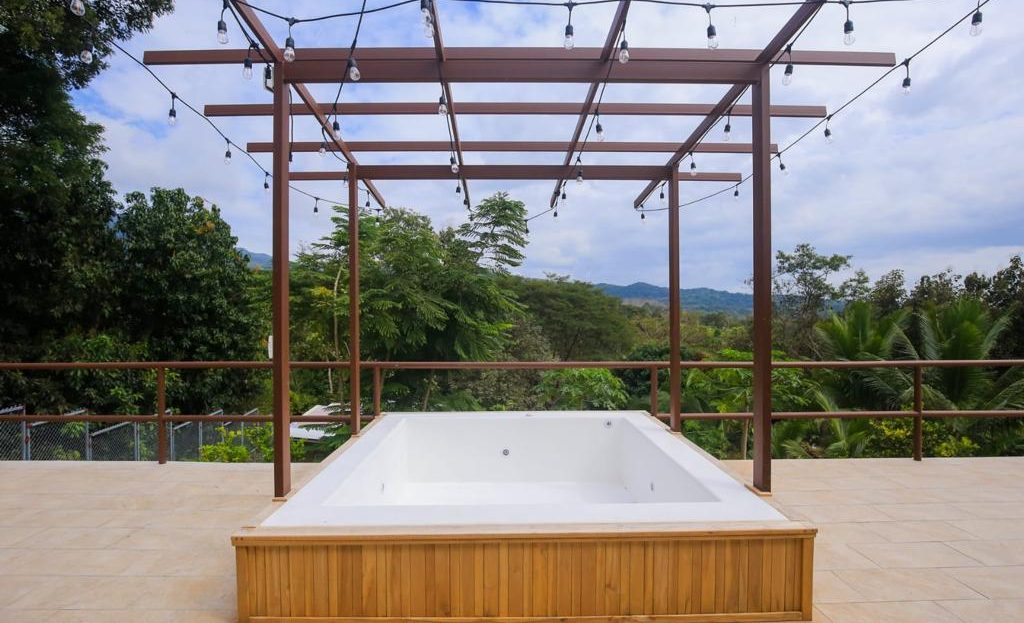 The design of the house allows a connection with nature; the large windows allow natural light to enter as well as enjoy the beautiful panoramic views; and at night, they make a perfect combination with the lights in the Jacuzzi area.