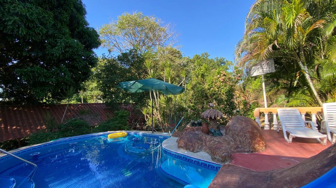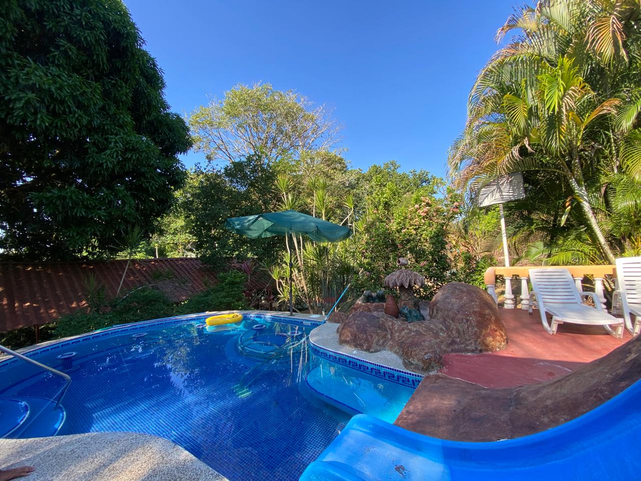 This Quinta has 2 swimming pools, a small basketball court and parking for 15 vehicles in a green area. It has fruit trees of mango, cas, star fruit.