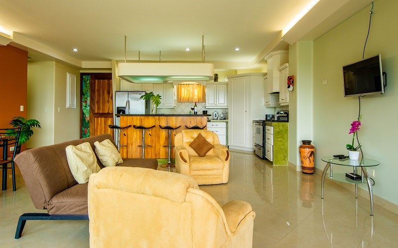 Ubicado en una colina privada con vista al lago Arenal, este condominio ofrece impresionantes vistas del lago y los volcanes Arenal y Tenorio. El diseño amplio y luminoso de este condominio comienza con la gran cocina abierta totalmente equipada con electrodomésticos de alta especificación y una barra de desayuno con isla, y que se abre a una sala de estar amueblada con piso de cerámica. El dormitorio principal con baño tiene un vestidor más cercano y una puerta corrediza de vidrio que da al balcón que da al lago.