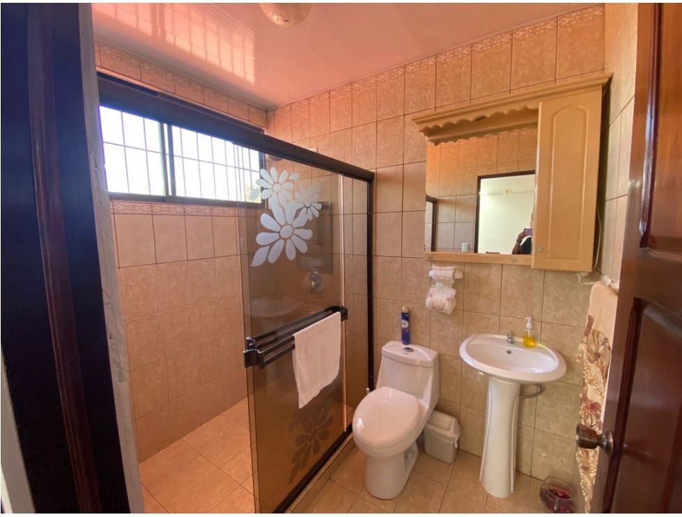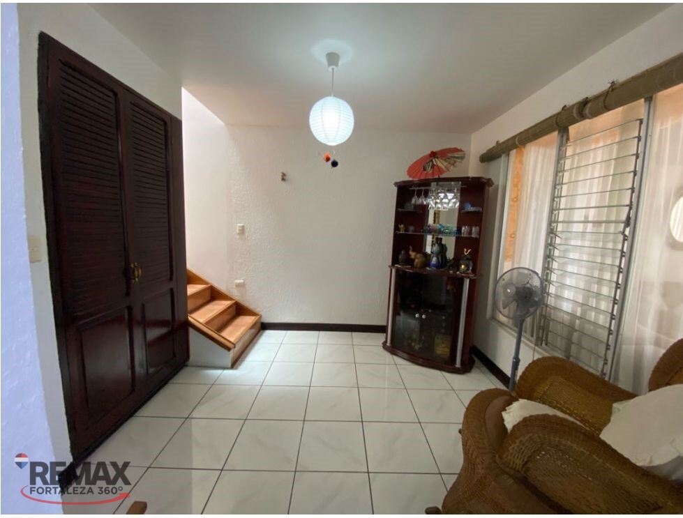 Características principales: – 3 habitaciones con closet (principal en planta baja con baño completo y jacuzzi) – 2 baños completos + medio baño – Cocina amueblada- Sala acogedora – Cochera para 1 vehículo con prevista para un segundo vehículo – Pequeña bodega y varios espacios de almacenamiento – Zona de lavandería – Tanque de agua