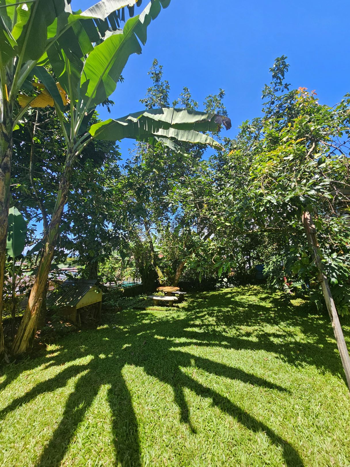 -Large backyard with trees and garden