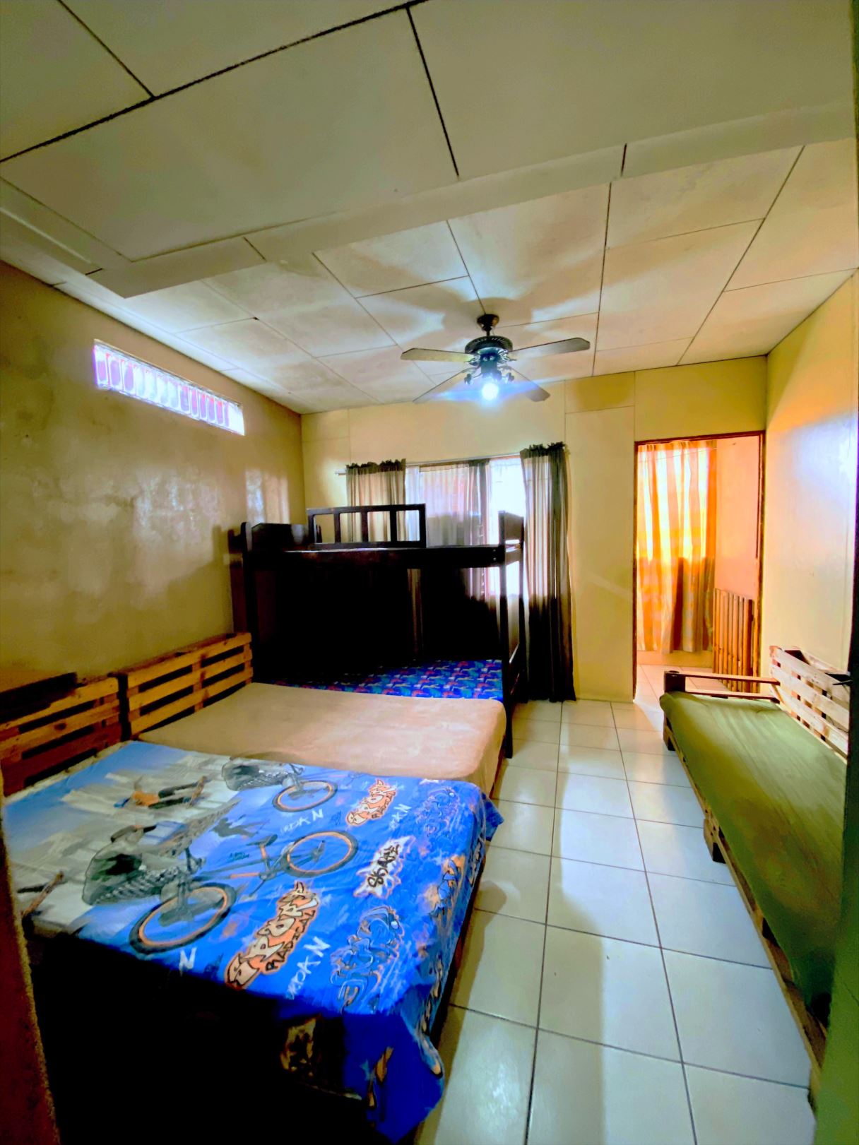 La distribucion de la casa tiene la gran ventaja de que se permite vivir en el piso principal que tine 1 cuarto, cocina, sala, cuarto de pilas. Y alquilar el resto como 2 apartamentos. Cada uno con 2 cuartos, baño completo, sala, cocina, y cuarto de pilas. Lo que resulta en una gran oportunidad de generar ingresos pasivos.
