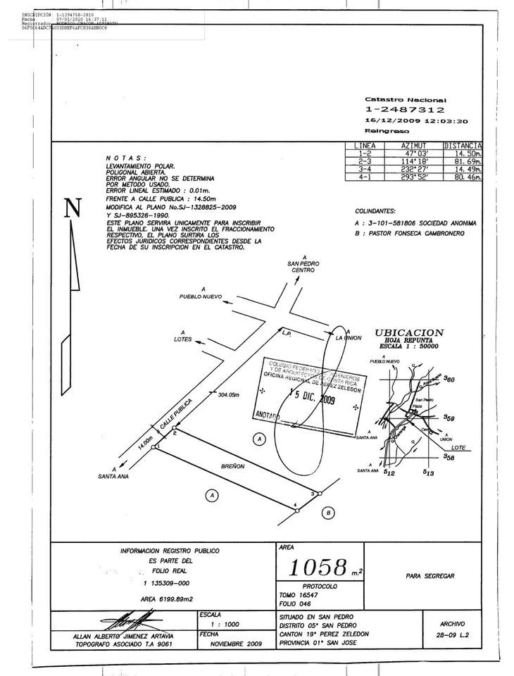 Beautiful flat lot for sale in the center of San Pedro, Pérez Zeledón.The property measures 1,058 square meters and offers a great location with direct access from the main road.
