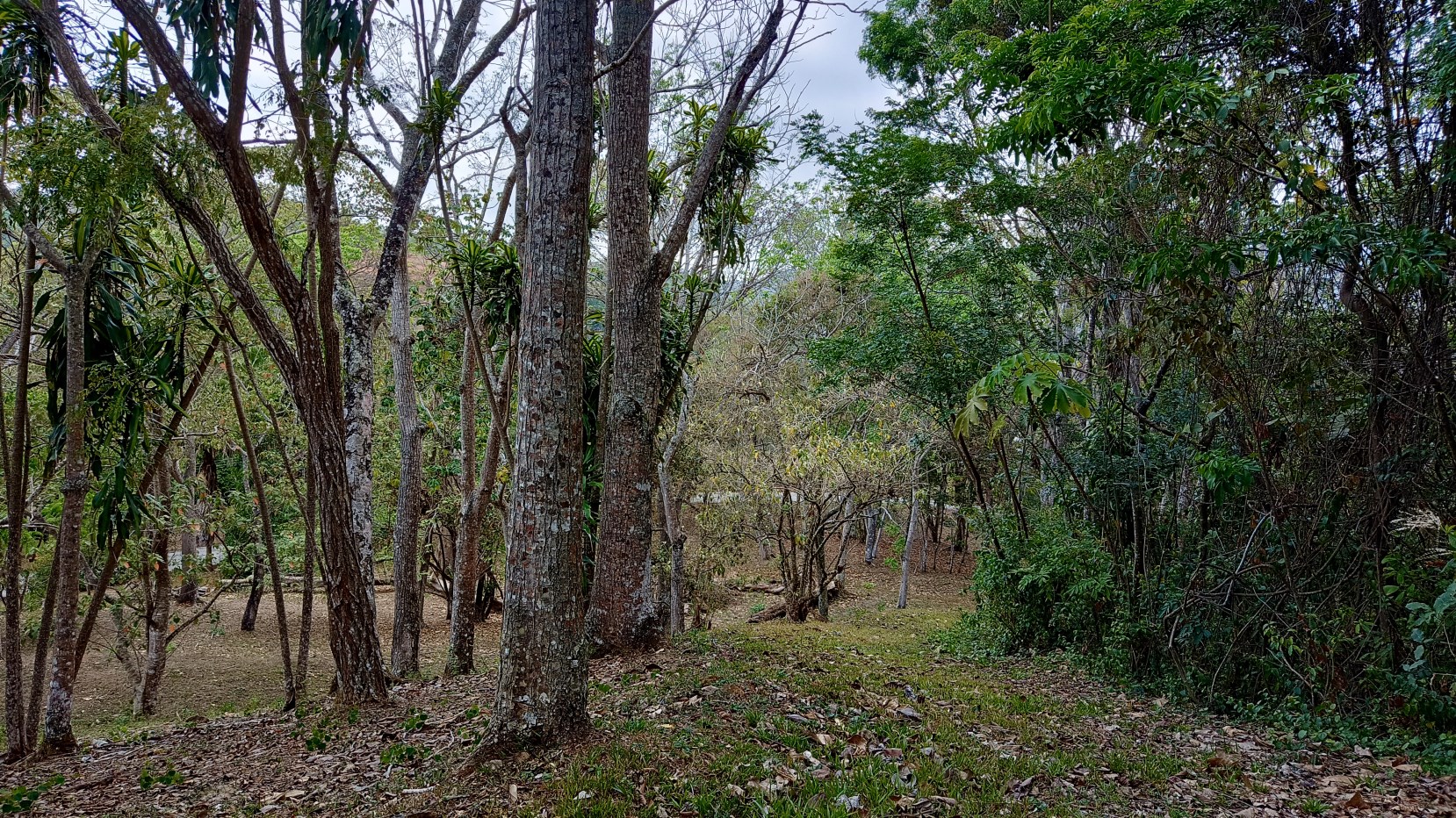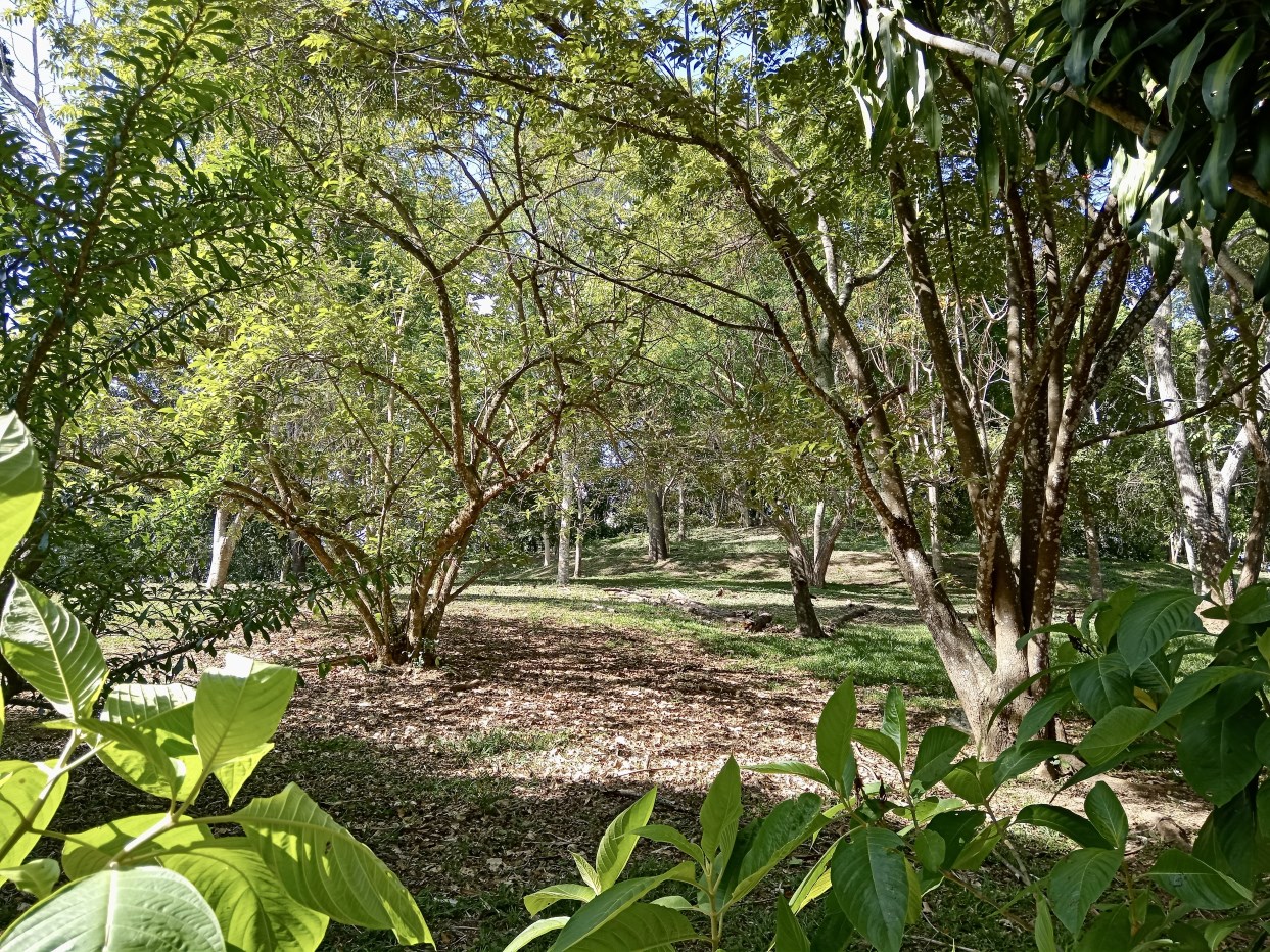 There are many timber trees, fruit trees, mountains views and many birds.