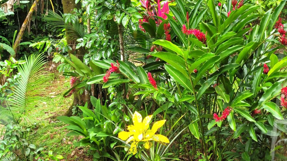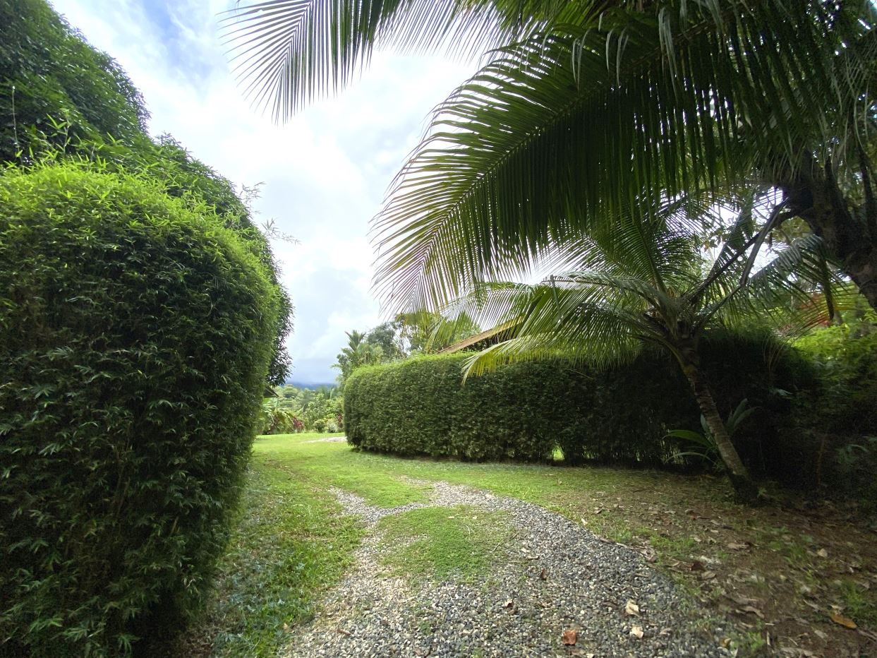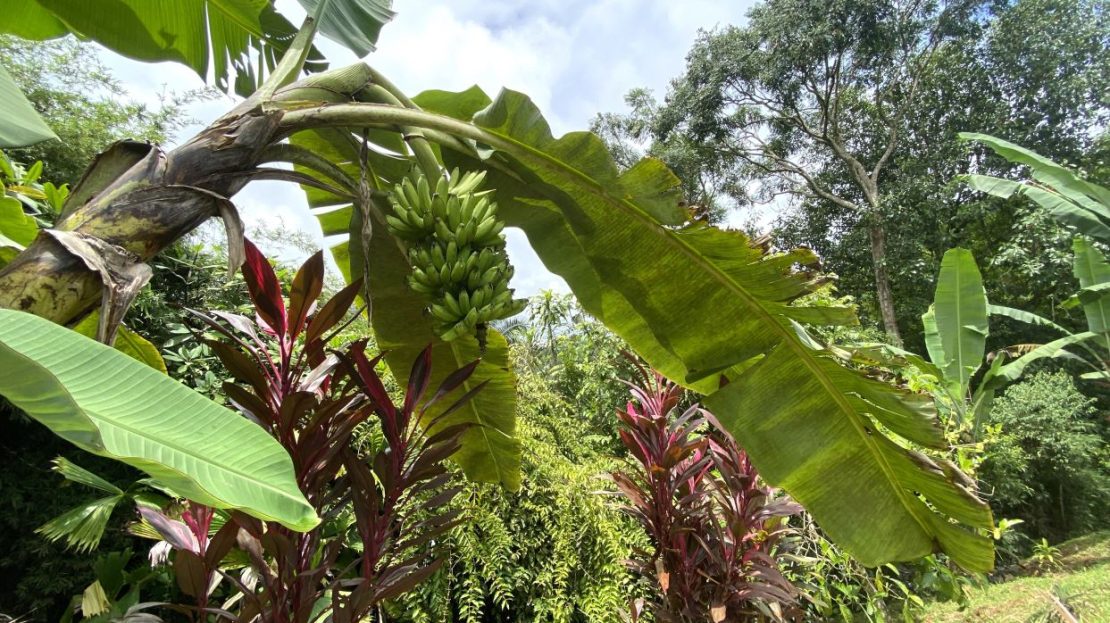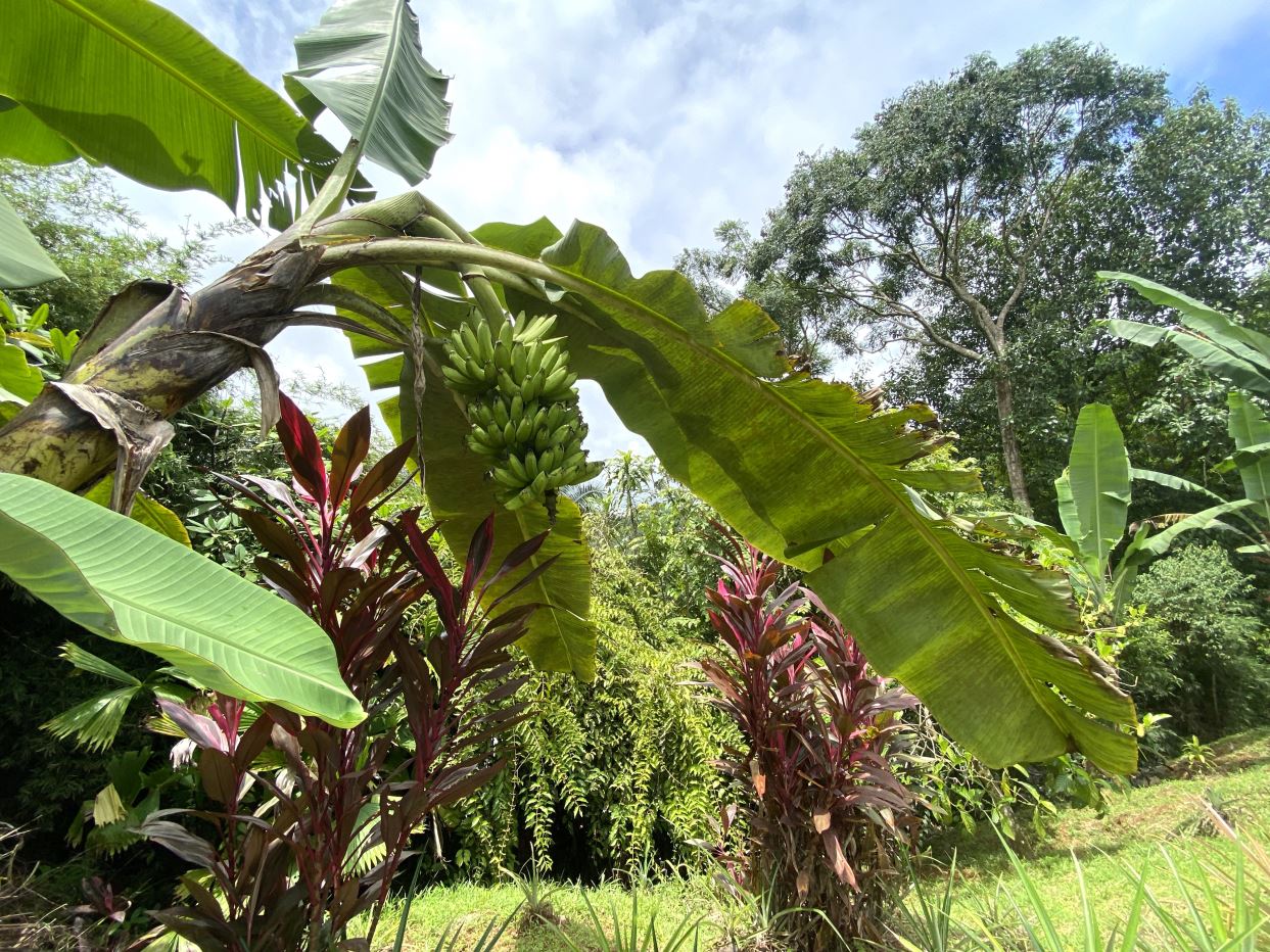 Privacy: Secluded property surrounded by mature fruit trees including banana, mango, plantain, starfruit, and pineapple