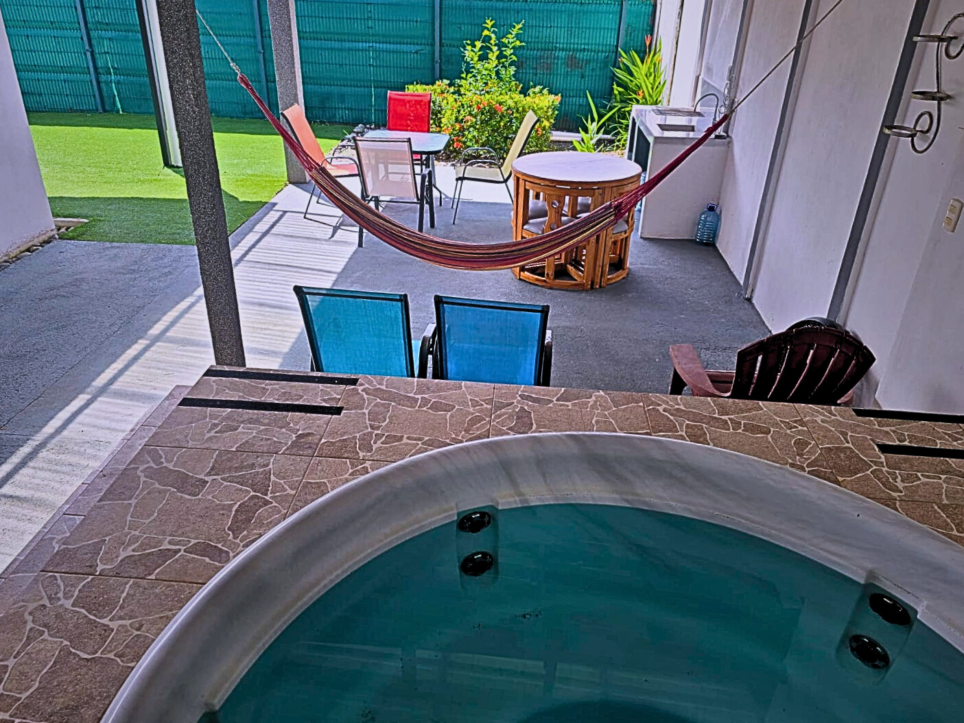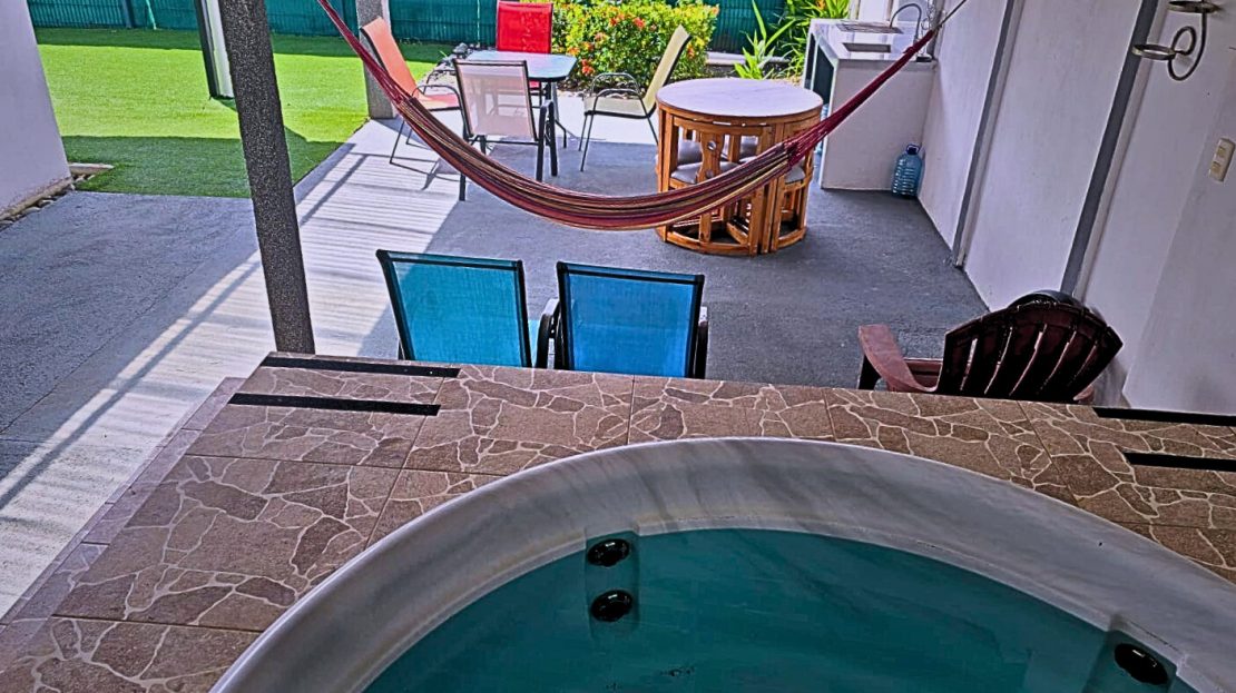 One of the most enjoyable features of the property is its private garden, which has a traditional-style rancho. An ideal place for relaxing, outdoor dining, or hosting informal gatherings. The jacuzzi sits among lush greenery, creating a calm retreat after a day at the beach. The home’s fenced yard and covered parking further support comfort and practicality.