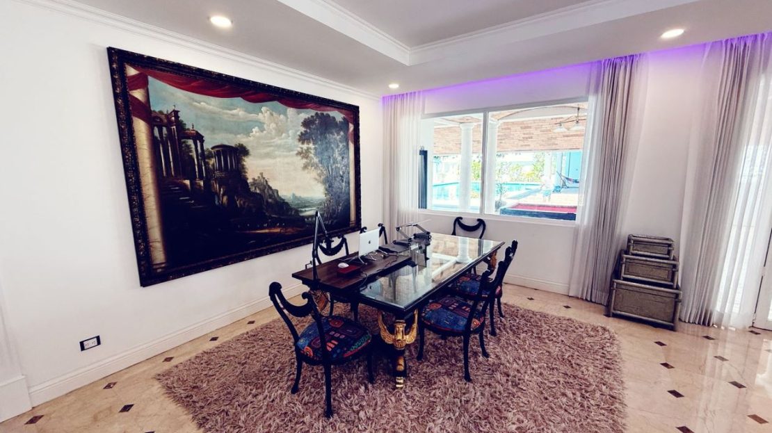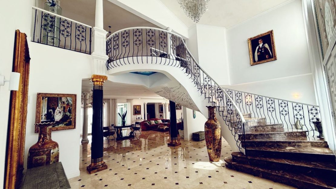 Cuando ingresamos a la propiedad nos saluda la entrada de una increíble mansión con una fachada imponente y elegante. Al entrar, veremos una espaciosa sala con muchísimo espacio de comedor y sala de estar con su baño para visitas que puede albergar las mejores fiestas familiares o eventos con muchos invitados o simplemente para la comodidad de los habitantes de Palacio Pura Vibra.