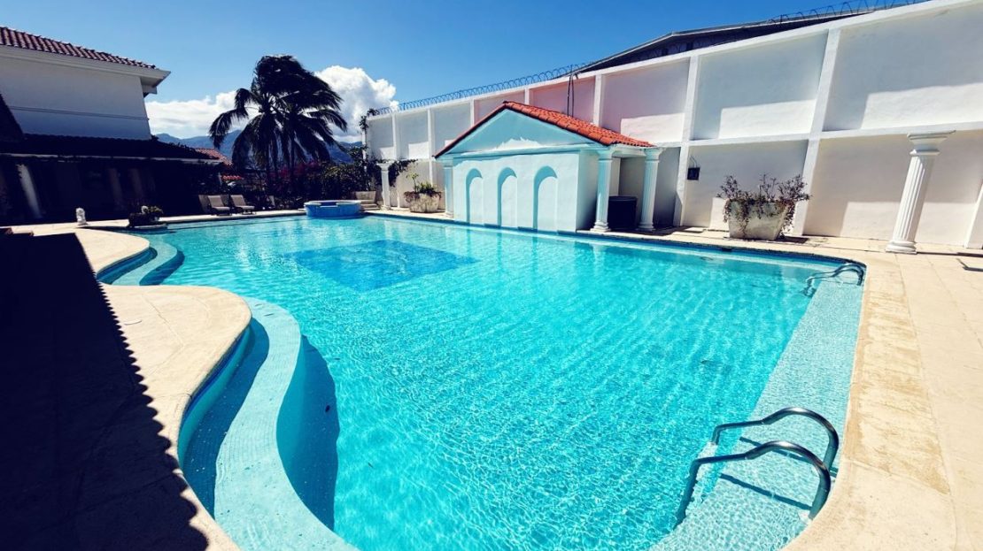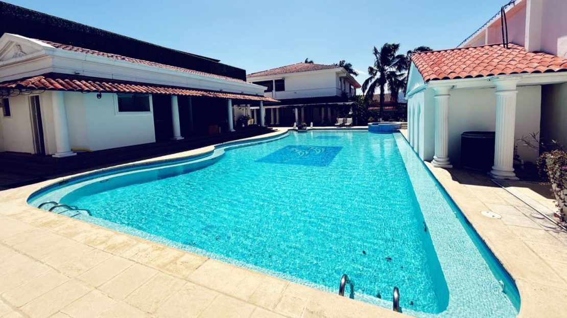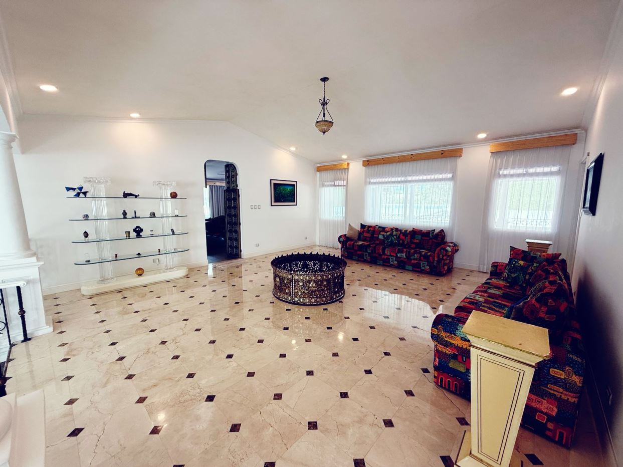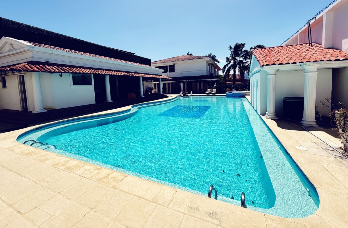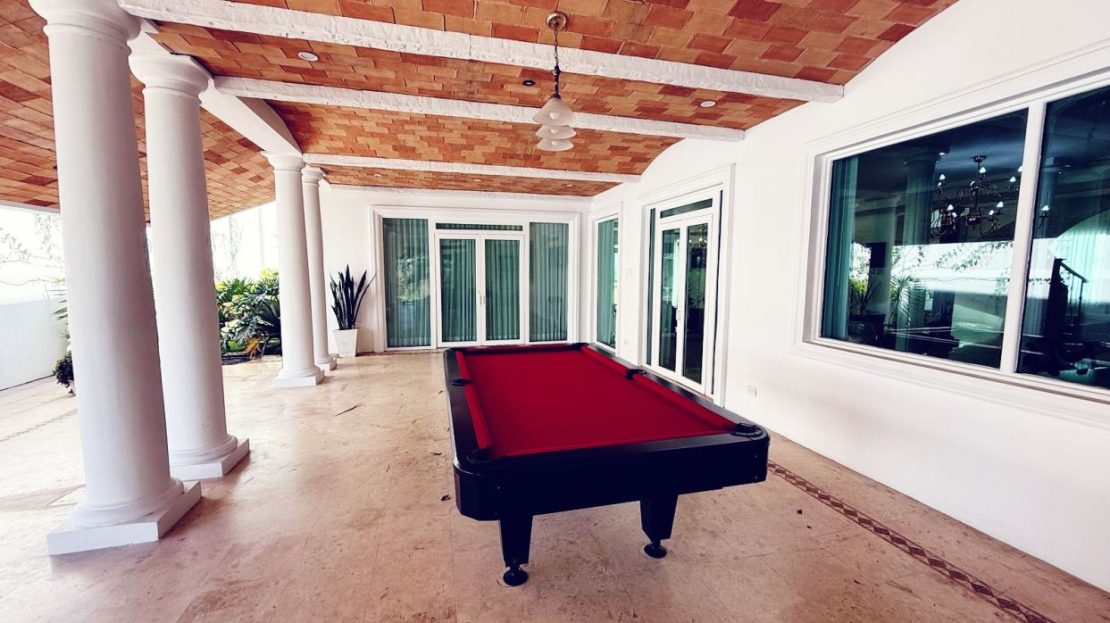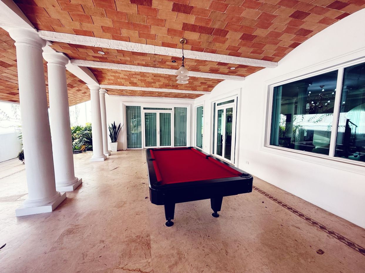 Detrás de la gran mansión tenemos un espacio de esparcimiento muy amplio con corredores, mesa de Pool, área de barbacoa y una gran piscina, con su deck para fiestas y reuniones con sus respectivos baños y duchas.