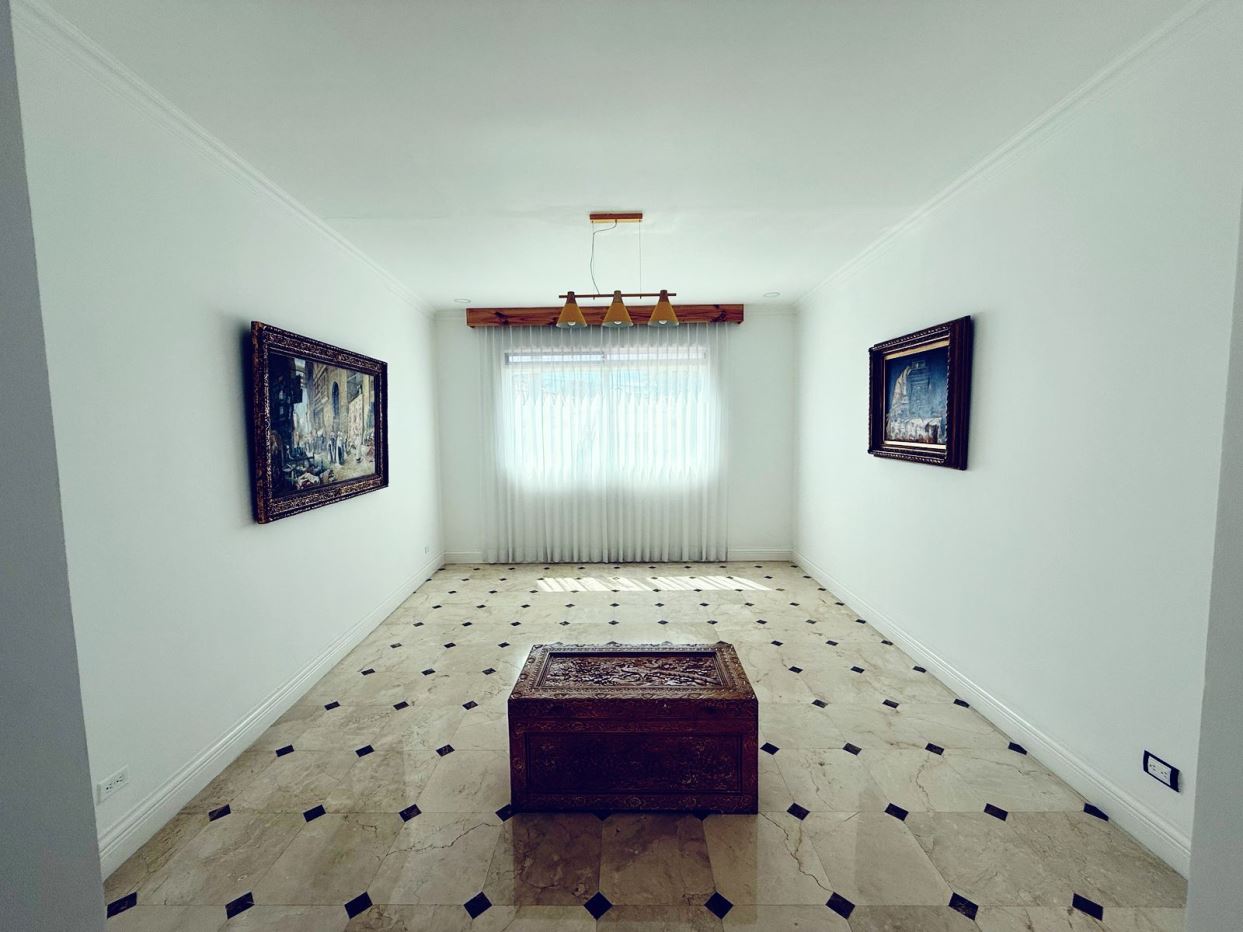 Adicionalmente en el primer piso tenemos una habitación máster muy espaciosa con aire acondicionado y su baño privado también muy amplio y cómodo. Finalmente tenemos un espacio muy amplio que se puede usar como bodega, estudio o como una gran habitación extra, además del acceso al parqueo que convenientemente puede albergar 4 autos grandes o 6 autos pequeños.