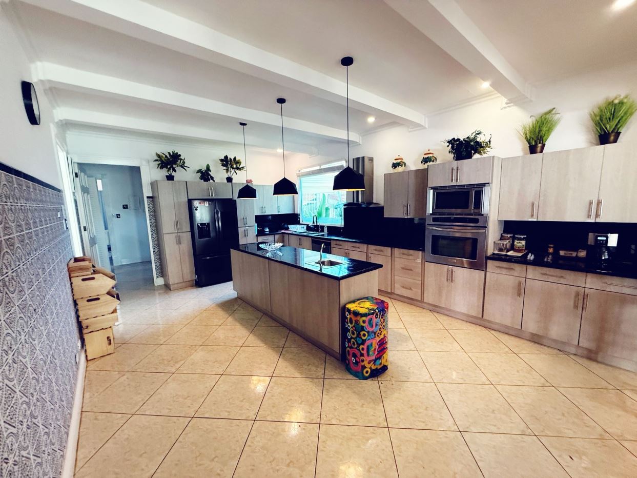 Junto a la sala de un lado tenemos un espacio de mini-bar muy acogedor y del otro lado un espacio que se puede usar como estudio, o incluso como una sala de estar adicional. También en el primer piso encontramos una cocina moderna y bien equipada con una sala extra que sirve como desayunador.