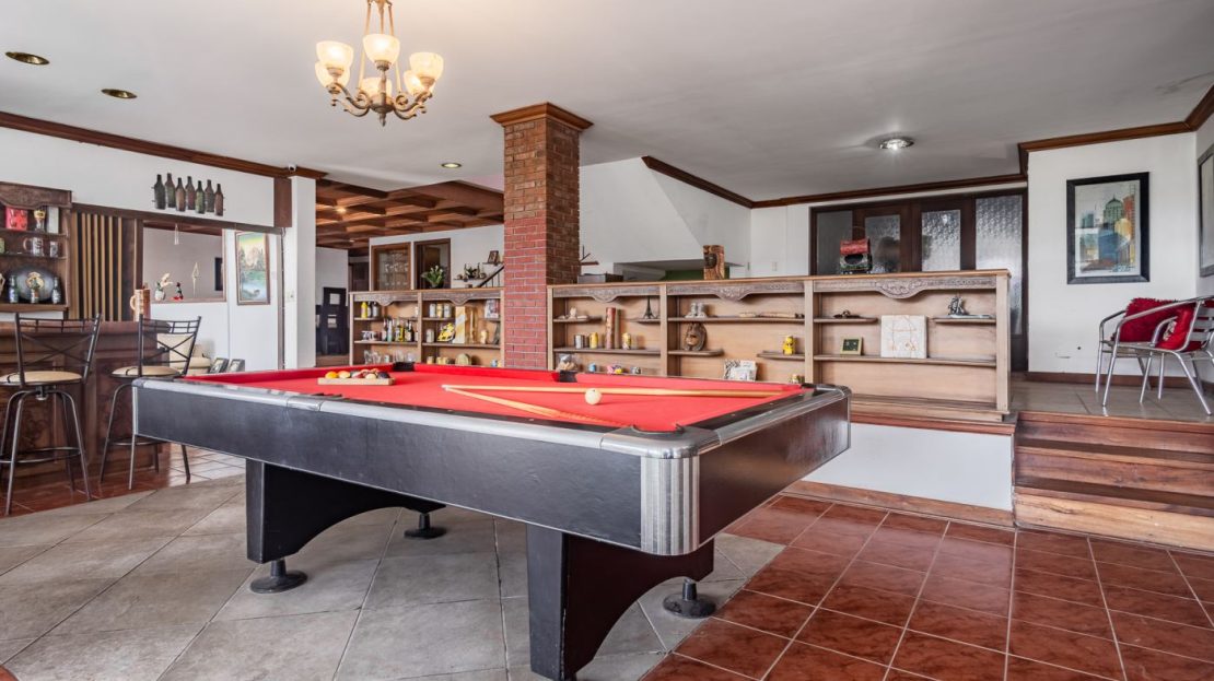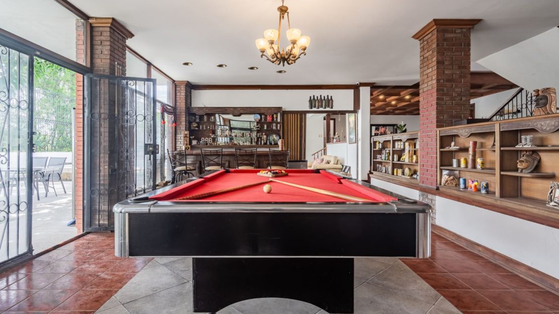 La sala de TV es el espacio ideal para relajarse, mientras que la terraza y la piscina invitan a disfrutar del clima tropical y momentos inolvidables al aire libre.