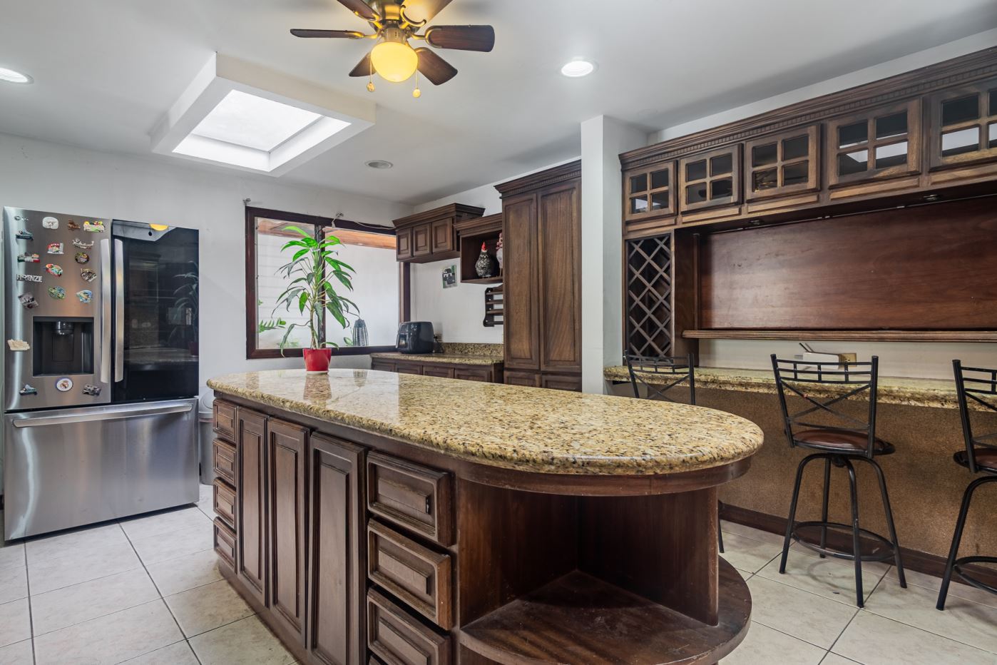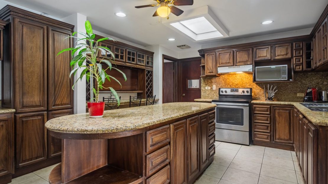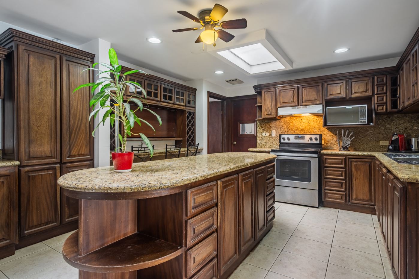 El vestíbulo conduce a una espaciosa sala de estar y un comedor formal, ideales para reuniones y celebraciones. La cocina, diseñada para los amantes de la gastronomía, se conecta fluidamente con una zona de entretenimiento y bar, perfecta para socializar.