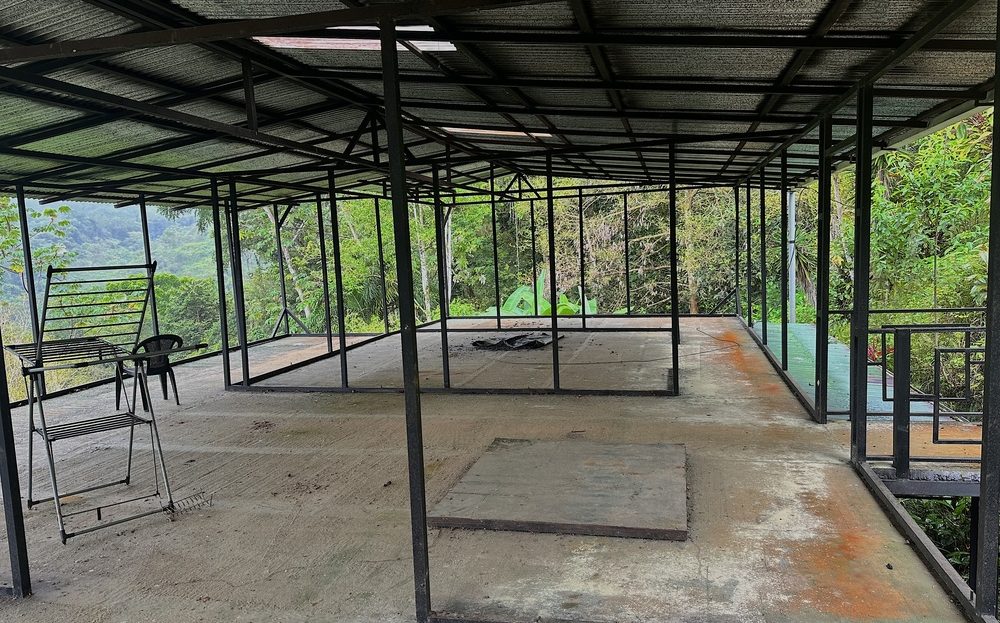 The owner has also started building a cabin measuring 6 meters by 8 meters, with only the framing and roof completed. This is another chance for the new owner to design the layout to their liking, creating a perfect space for guests.