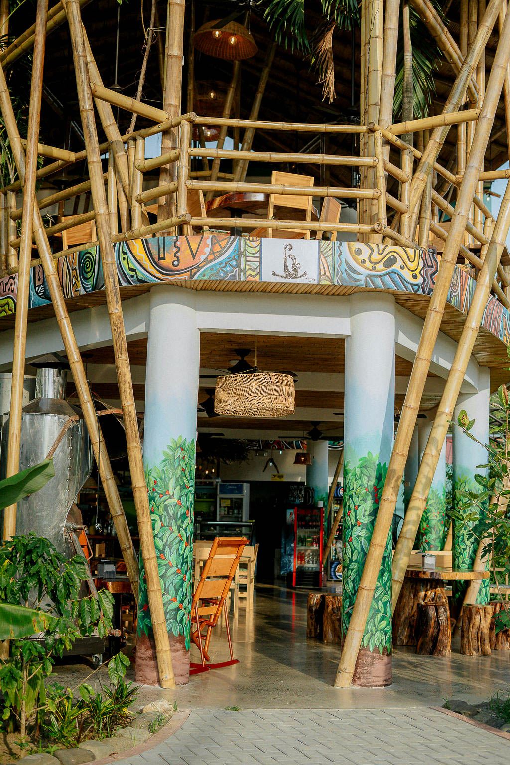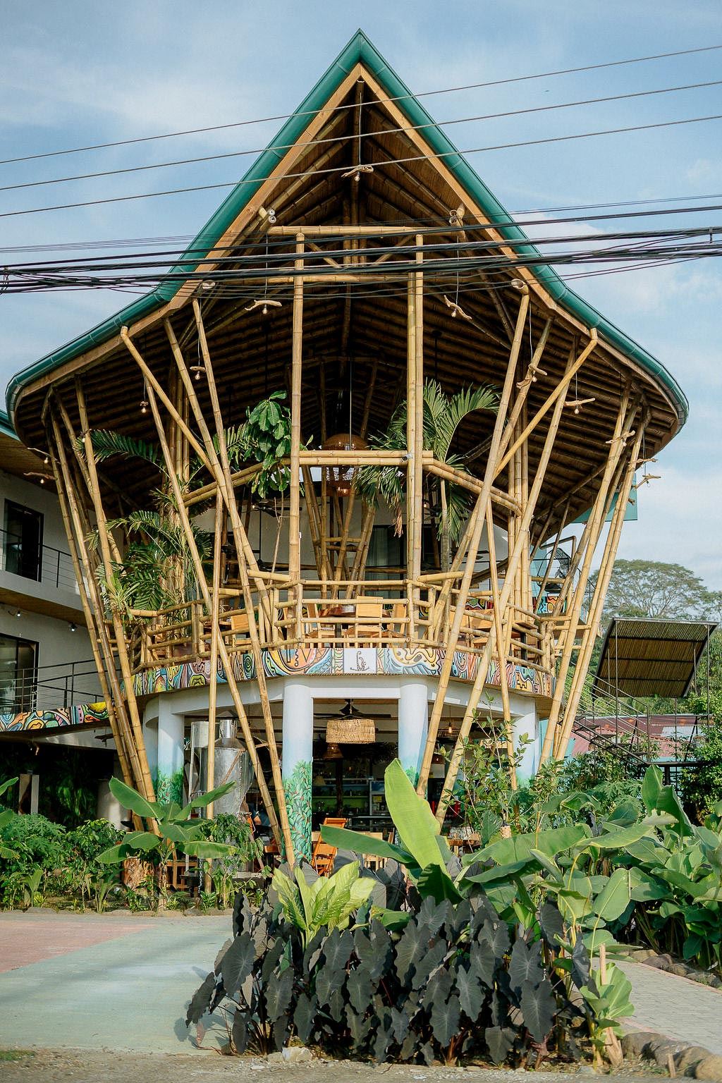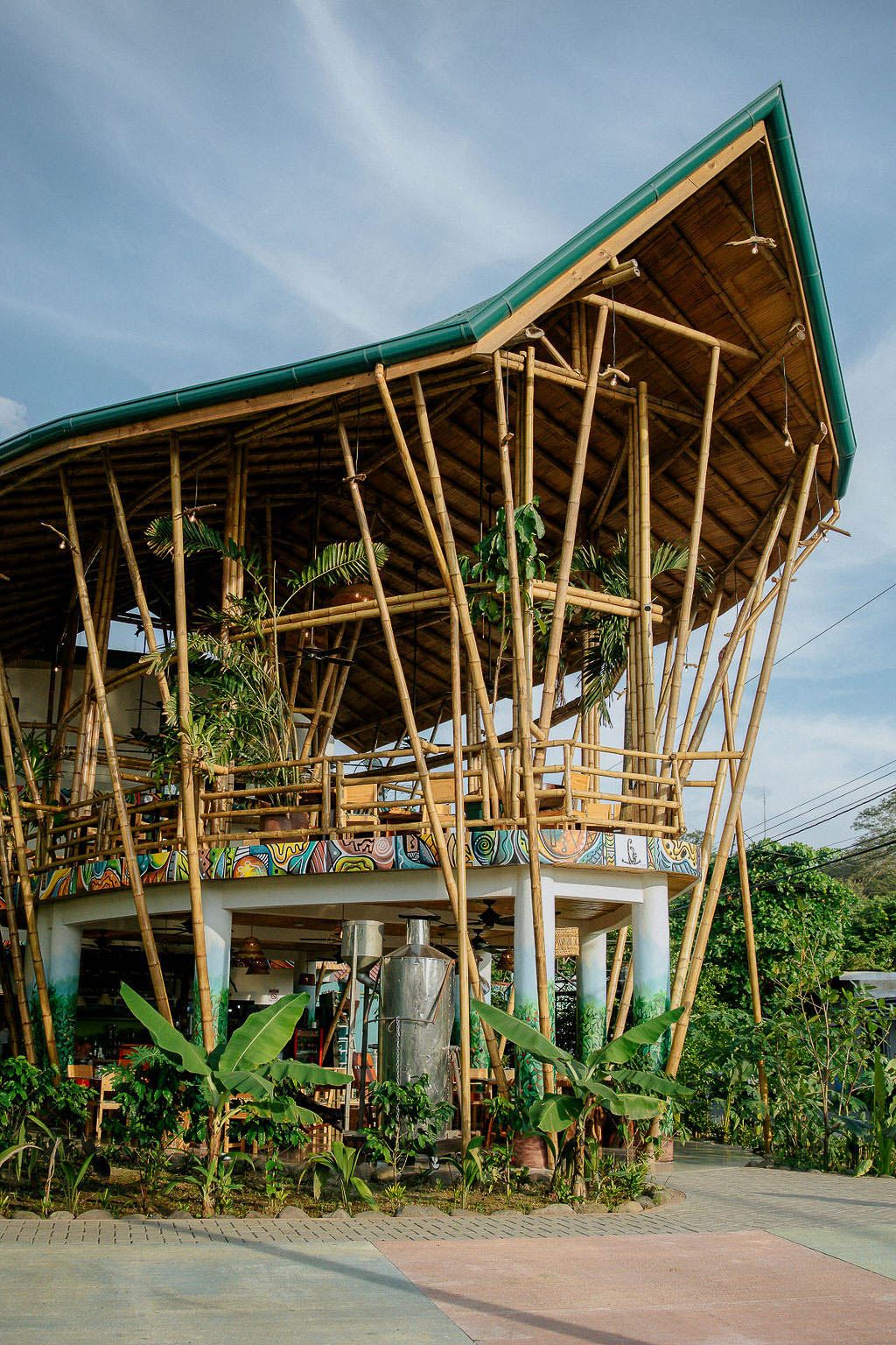 Café/restaurante de bambú de 2 pisos, construido con materiales locales