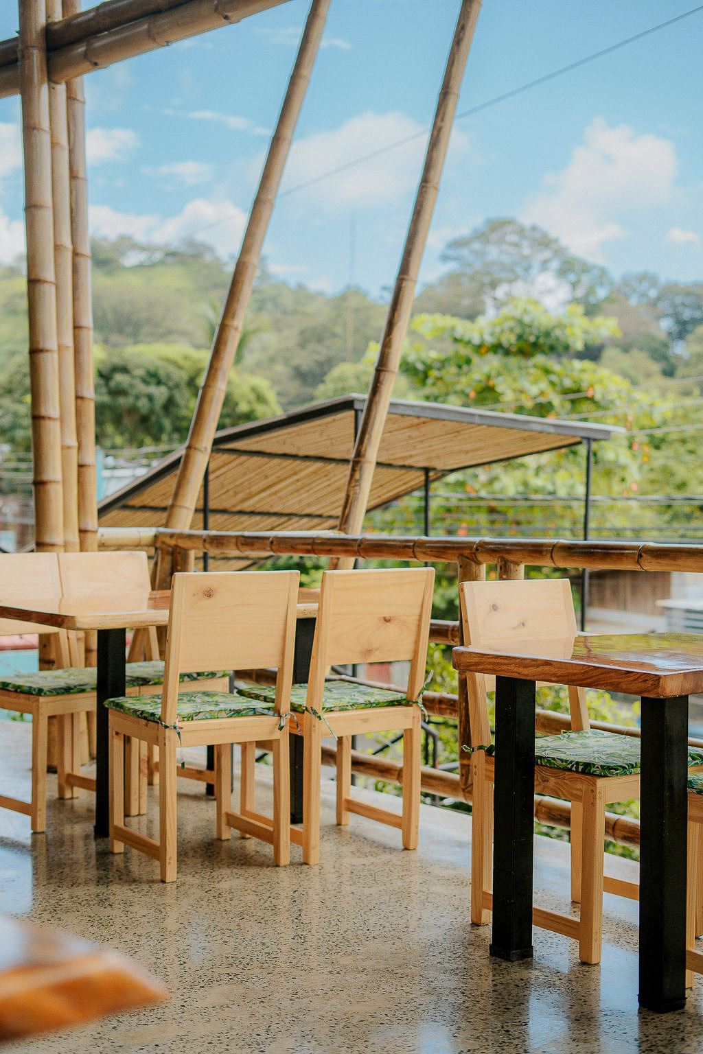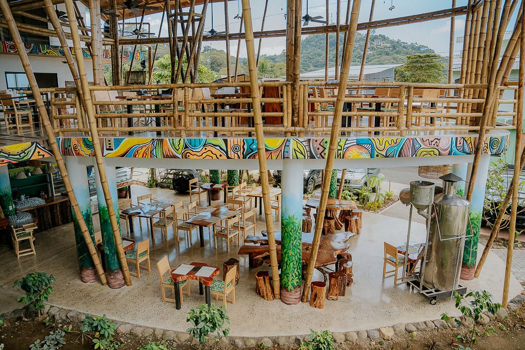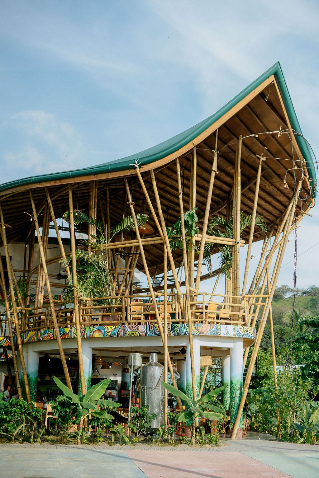 Café/restaurante de bambú de 2 pisos, construido con materiales locales