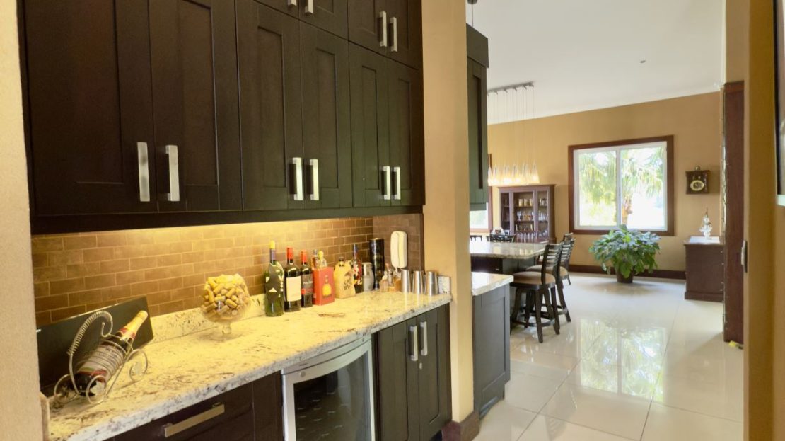 Área de bar con refrigerador de vinos empotrado