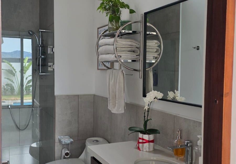 This house is located just a 10-minute drive from Atenas center and very close to the exit to Highway 27, which leads to the airport.It is situated in a gated community of only 5 houses; this house is the last one on the hill, so it has magnificent views, with breathtaking sunrises. There is no guard; each owner has their own access. No HOA.