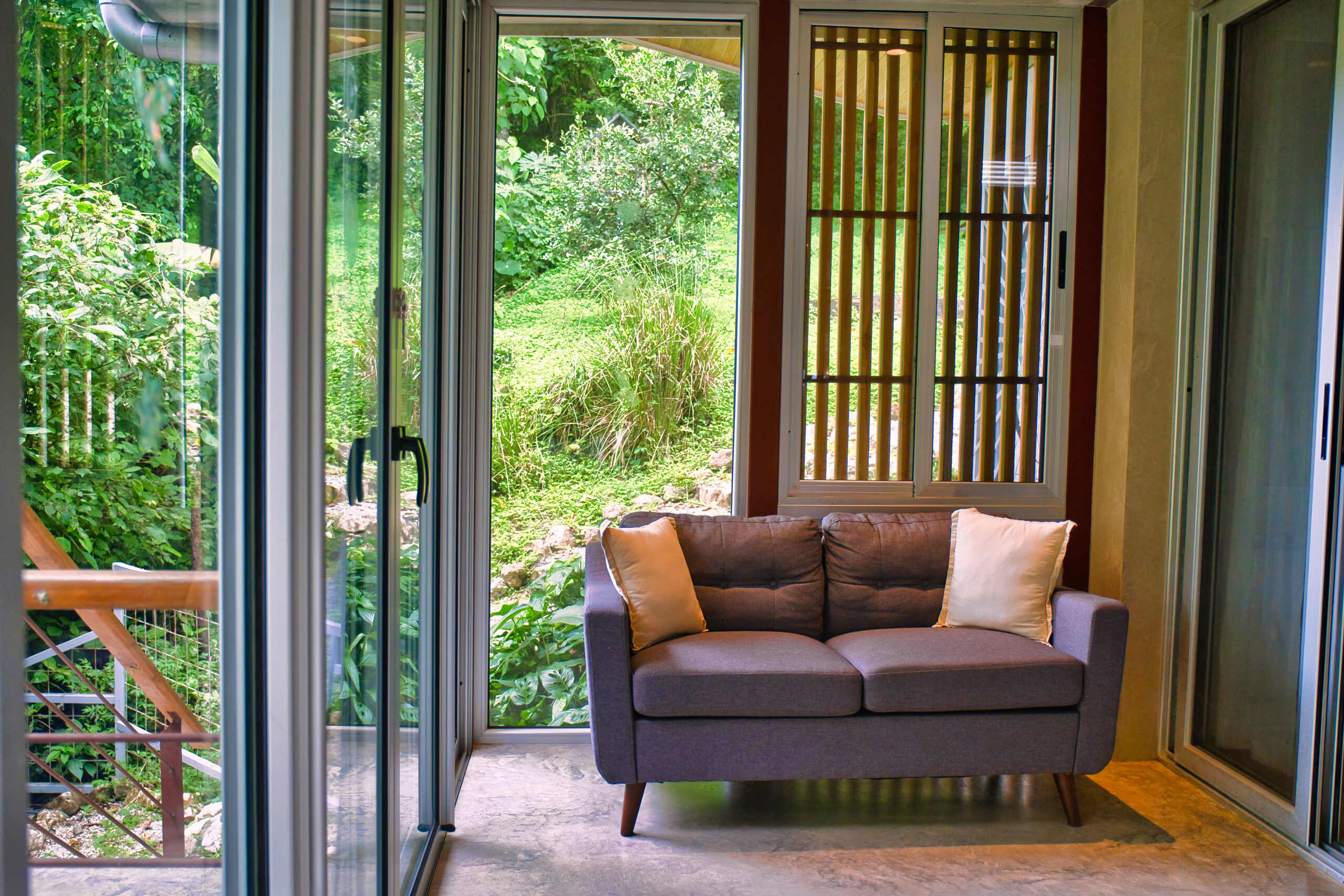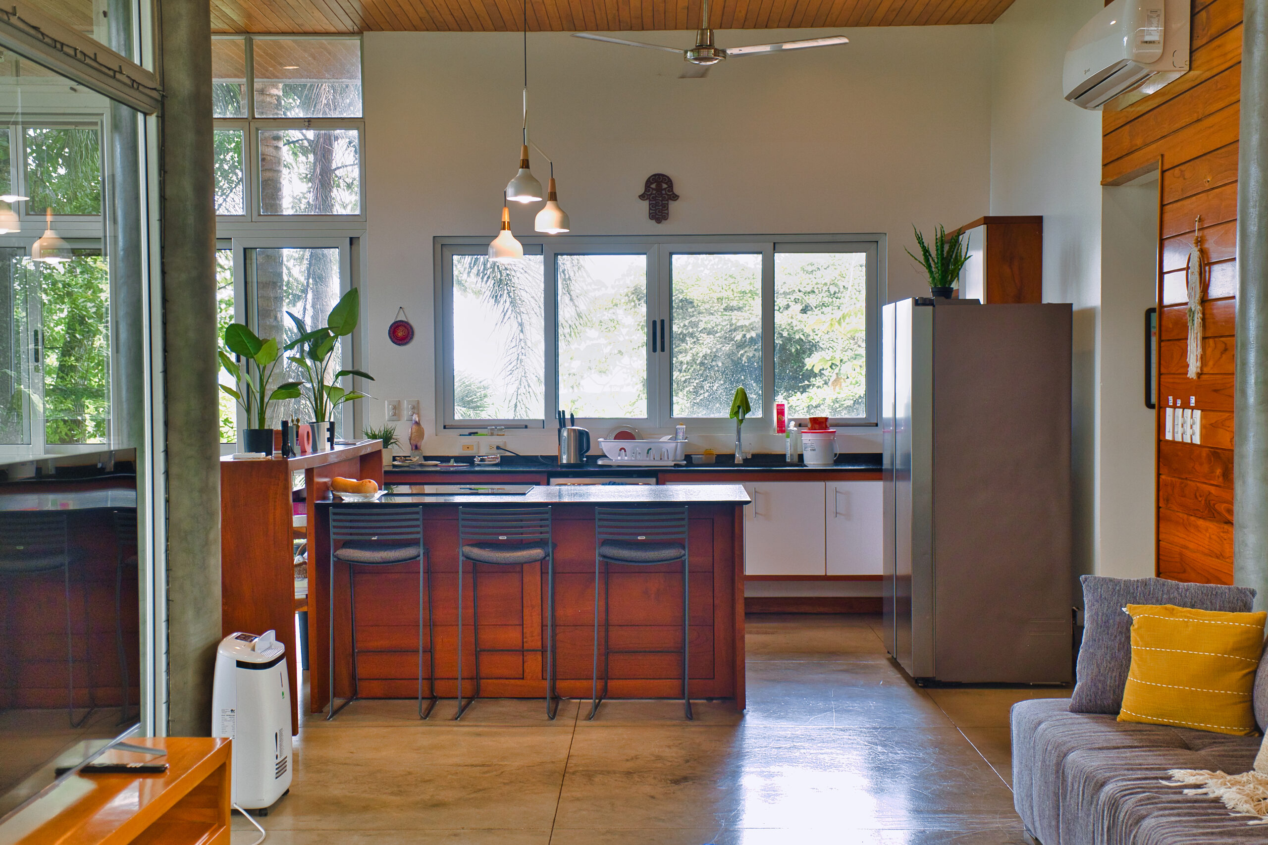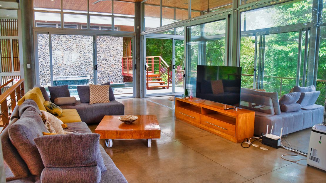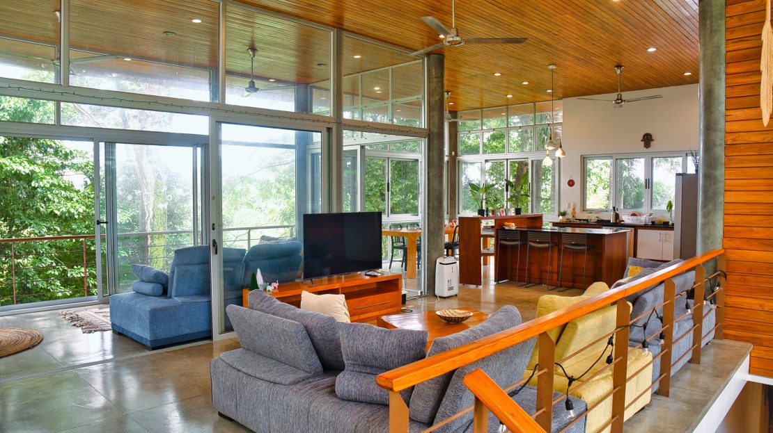 Surrounded by lush jungle, the property is a true haven of peace where you can regularly spot howler monkeys swinging from tree to tree around the house. Exotic birdsong accompanies the serenity of the place, yet it’s only 10 minutes from local amenities.