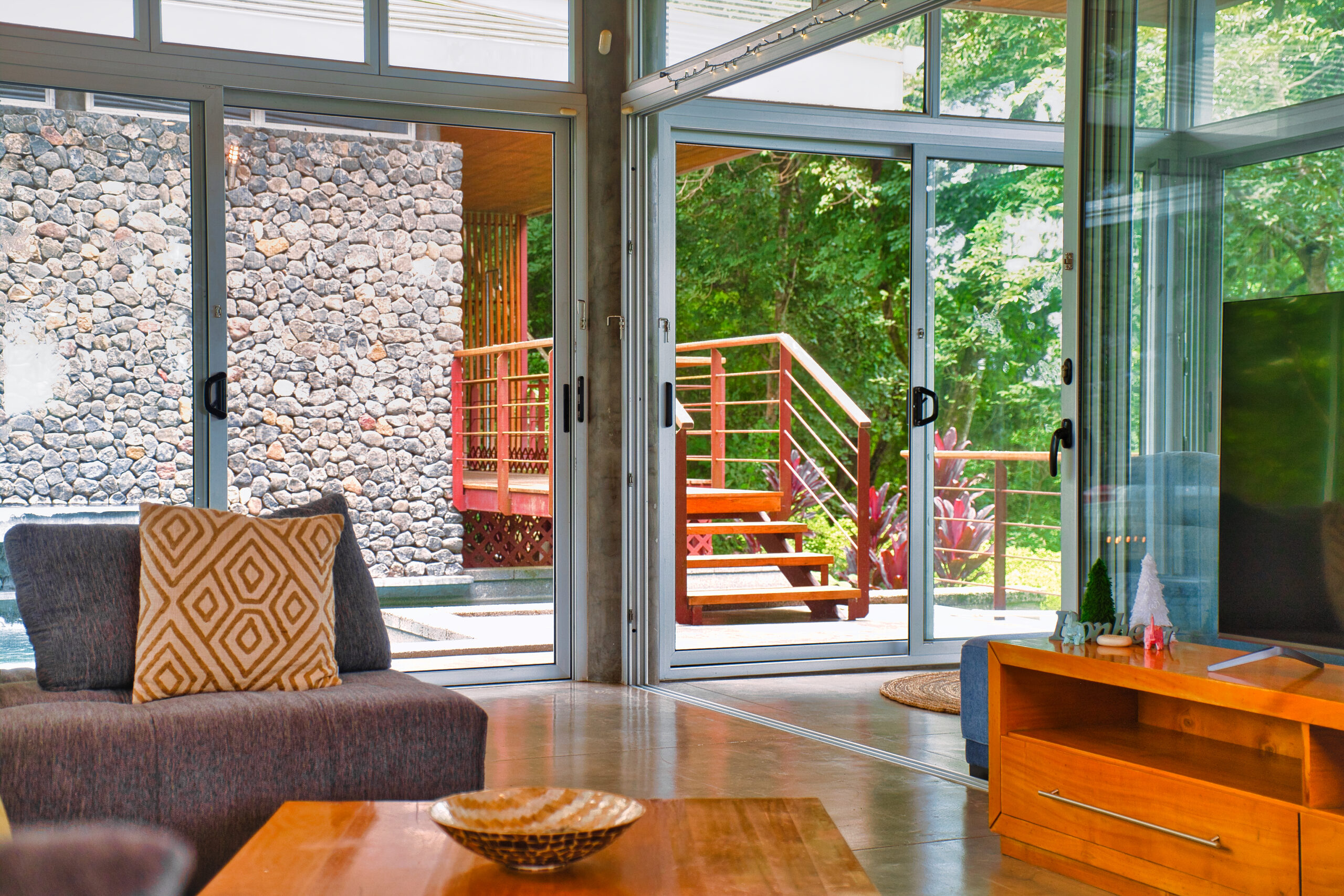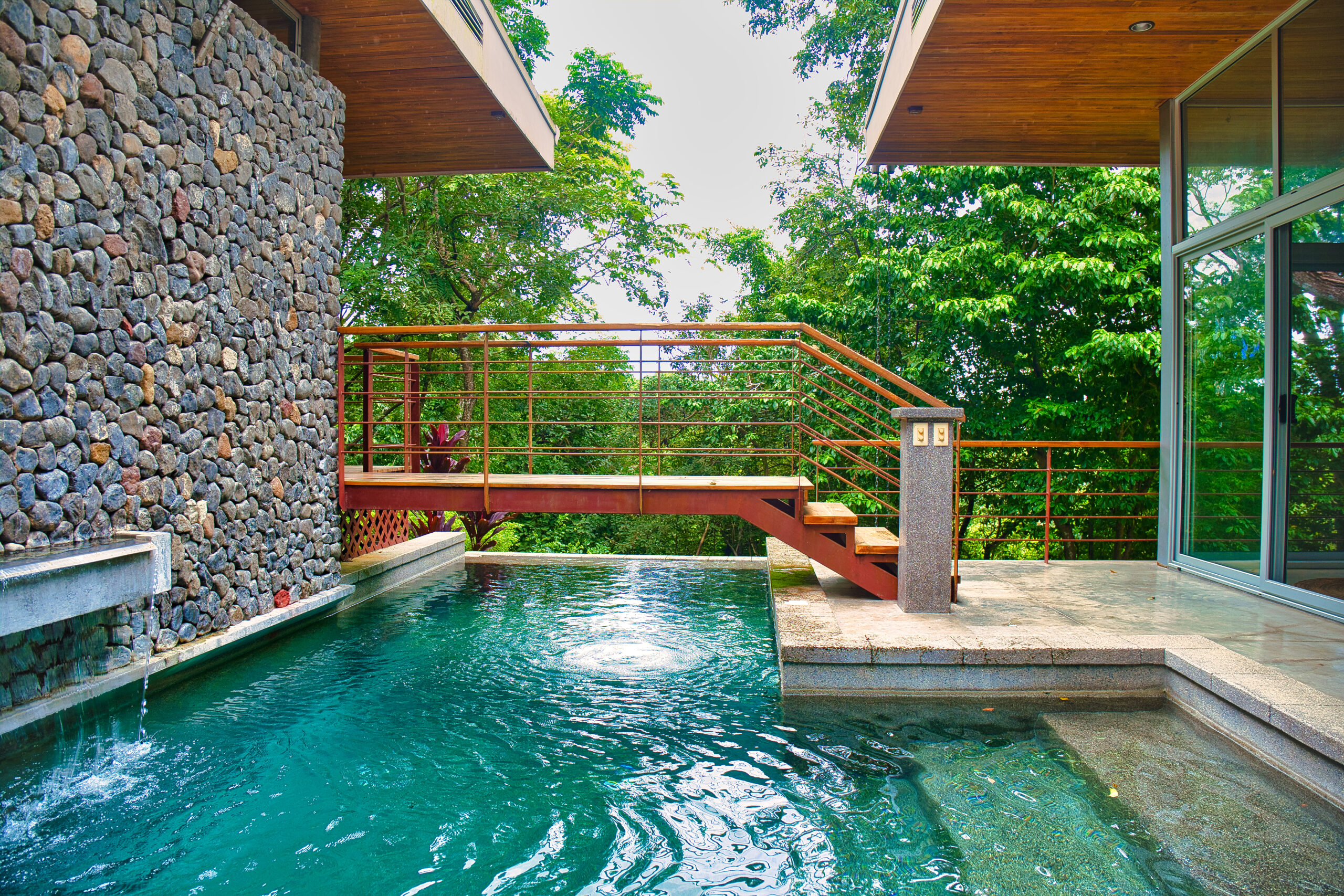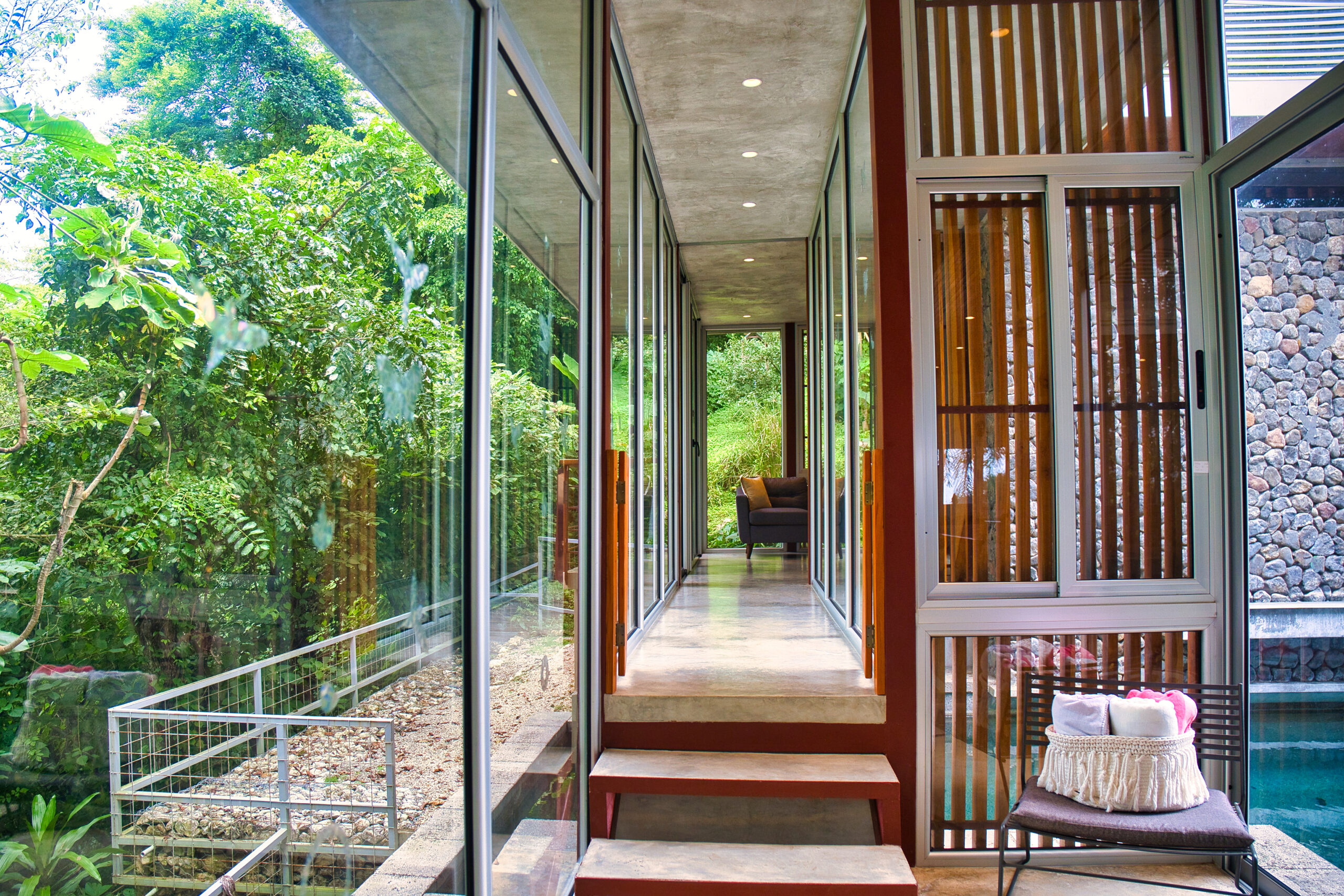 Surrounded by lush jungle, the property is a true haven of peace where you can regularly spot howler monkeys swinging from tree to tree around the house. Exotic birdsong accompanies the serenity of the place, yet it’s only 10 minutes from local amenities.