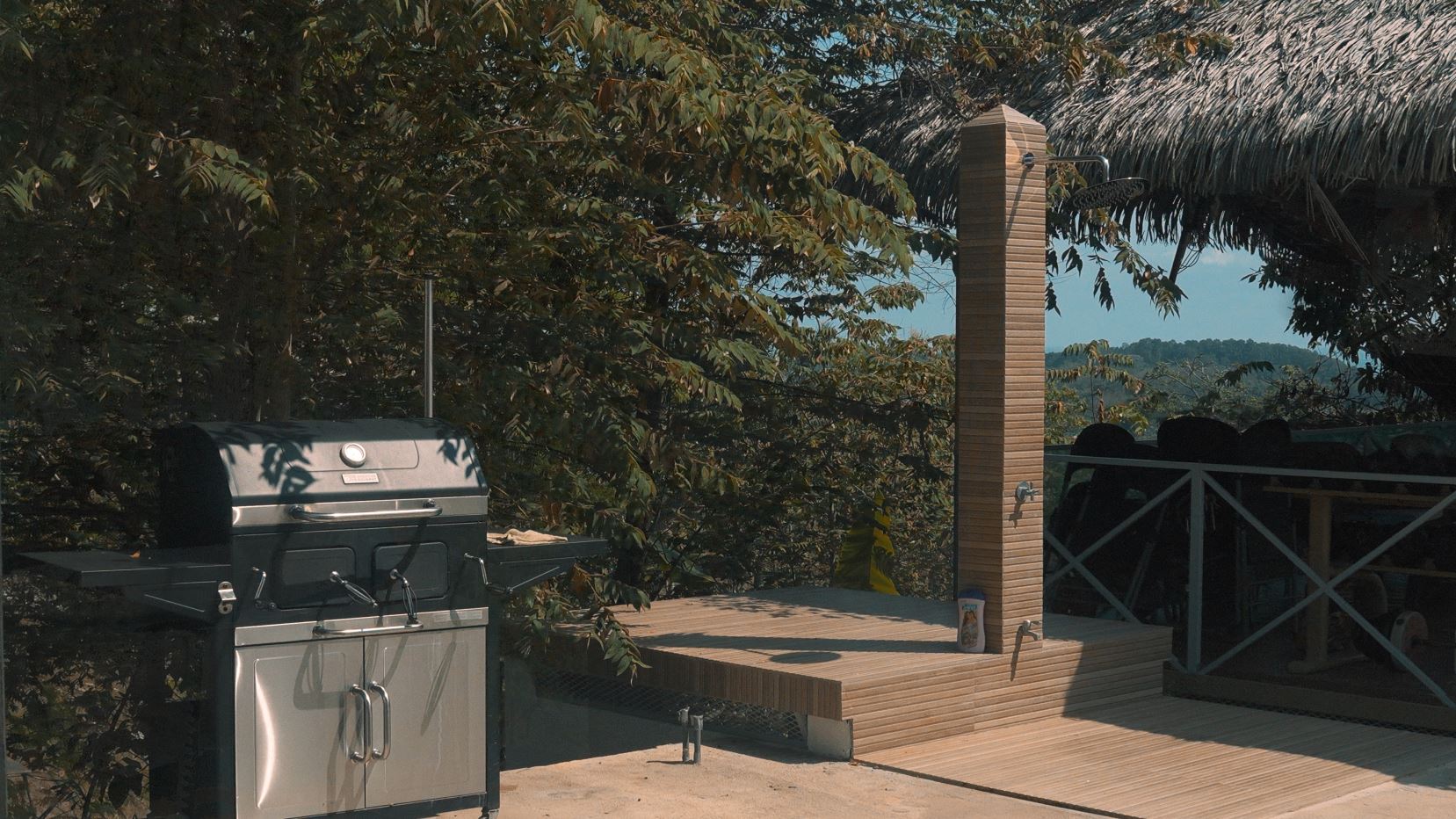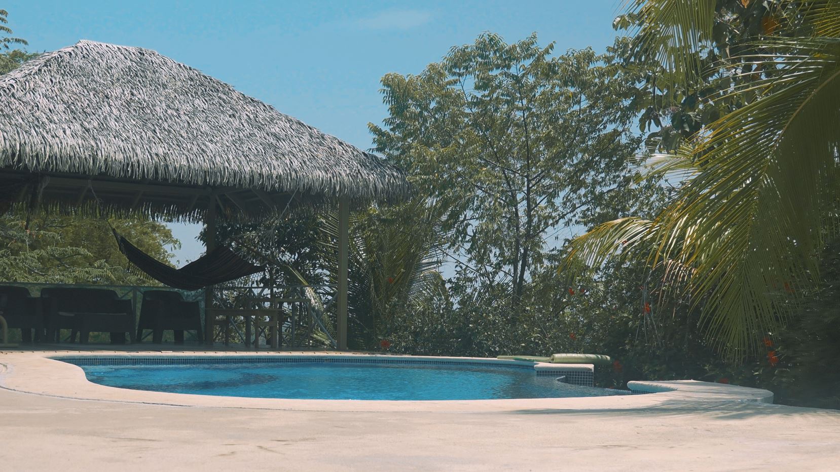 En el corazón de Brisas del Golfo se encuentra una piscina de agua cristalina rodeada de una flora vibrante, con un amplio rancho de 300 m² en las inmediaciones. Esta zona exterior incluye una cocina al aire libre, una ducha e instalaciones junto a la piscina, creando un espacio acogedor tanto para la relajación como para el entretenimiento.