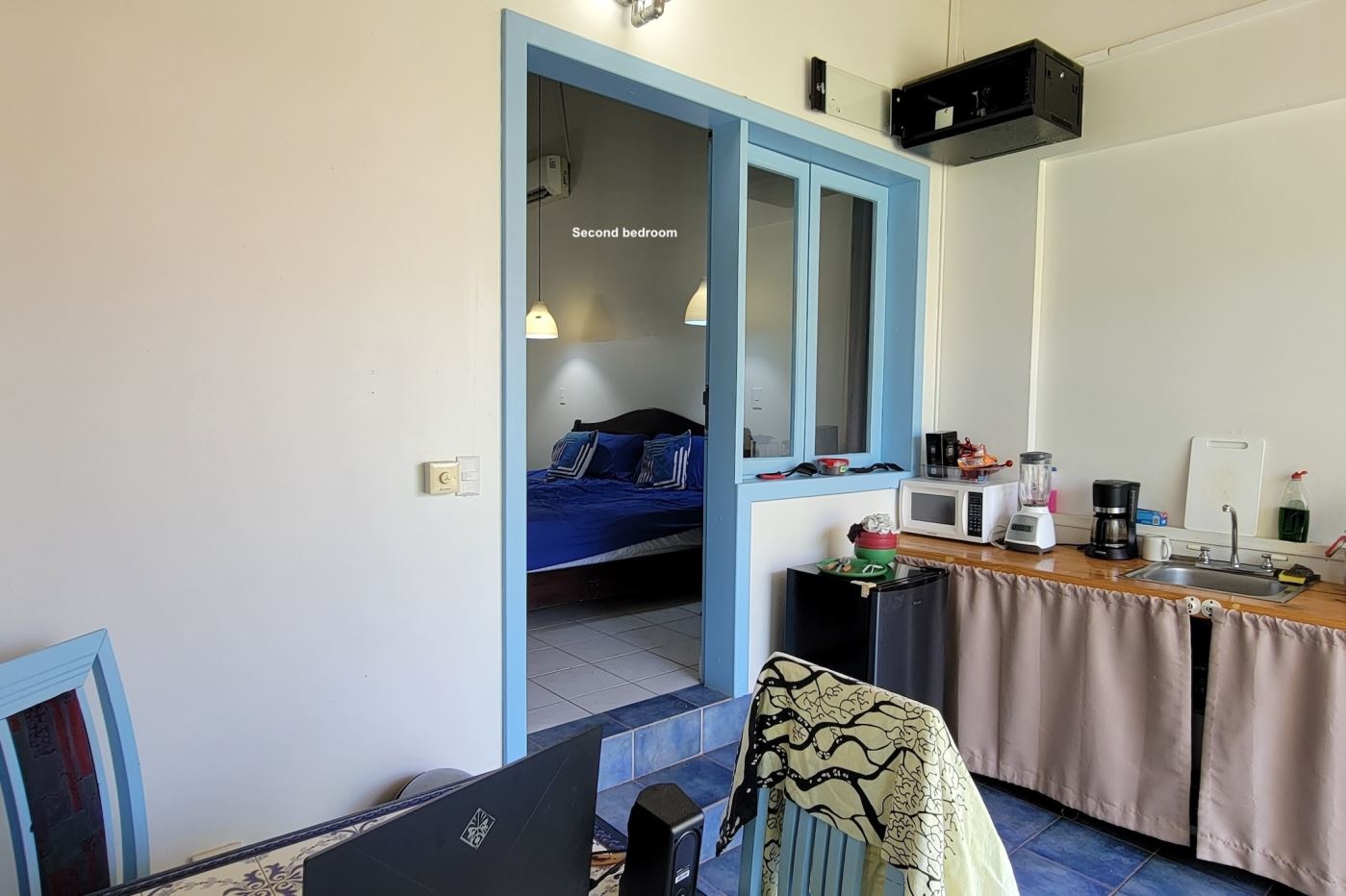 The main house offers 132m² on the ground floor and is currently configured as a one-bedroom home, but can easily be converted back into a two-bedroom layout by reopening a previously closed partition wall. An independent upstairs bedroom with exterior access completes the property and is ideal for on-site staff accommodation.