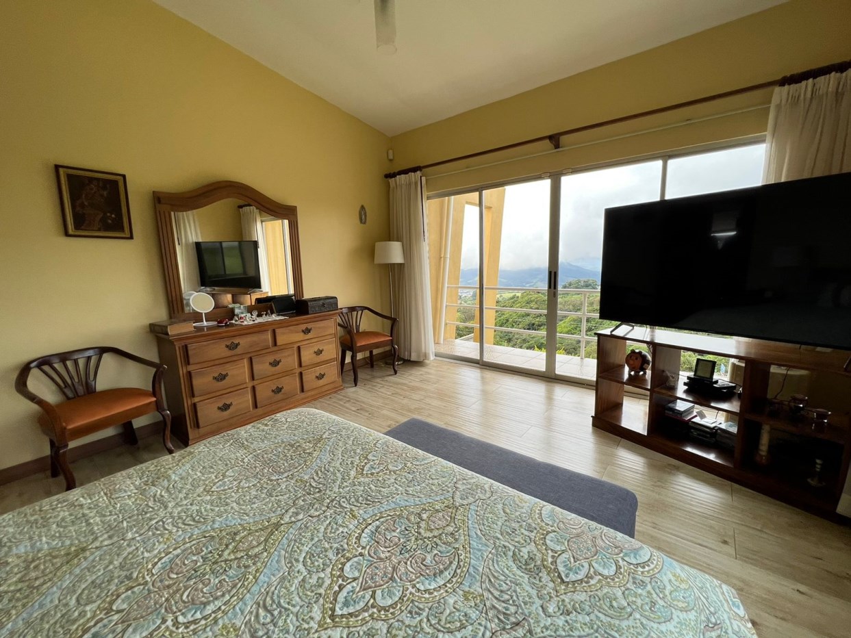 MM-3-001-1223-CS /// 400182457190 Discover serenity and comfort in harmony with nature in this exceptional property in Cartago, Llano Grande, Banderilla neighborhood. Upon entering, a 370-meter ramp welcomes you to a secure residence with a block wall, iron gates, and electric gates. The house, constructed with blocks, stands out for its spacious windows and balconies, creating a fresh and comforting space. The living and dining rooms, generously sized, seamlessly integrate with the second floor through an elegant wrought-iron staircase, taking advantage of variations in levels and ceiling heights. Strategically placed windows offer panoramic views of the natural landscapes. The master bedroom features a closet, wooden doors, large windows, a private bathroom clad in ceramics, and two additional rooms share a high-quality bathroom. The equipped kitchen includes a kitchen cabinet with a granite countertop, elegant upper and lower cabinets with wooden doors, and an “island” for four people. Additionally, the property includes a versatile office space adaptable for telecommuting or a gym, parking for two vehicles, and a laundry area. Surrounded by green areas and vegetation, the property provides peace and tranquility with views of the city of Cartago and the Irazú volcano. The residence in Llano Grande, Cartago, close to services within 5 km, has supermarkets such as AM/PM, Pali, and Megasuper, as well as pharmacies like Fischel and Pharmacy La Bomba. For education, access to Escuela de Llano Grande, Colegio Técnico Profesional de Cartago, Colegio COVAO, Colegio Seráfico, and Colegio Figueres Ferrer. For recreation, Llano Grande Park offers outdoor options. Although Banderilla is serene, there are restaurant and café options in the vicinity.