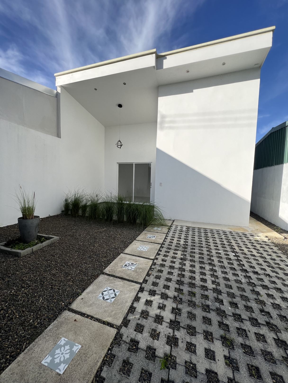 The property has 3 bedrooms, 2 full bathrooms, a living-dining room, an open-plan kitchen with a laundry area, and a garage for one vehicle, with 2 parking spaces. The house has high ceilings and large windows, providing light and natural ventilation. Additional access doors lead to the living room, the master bedroom, and one of the secondary bedrooms. The house also has gates and a courtesy screen. The investment value for this property is ¢59,000,000 (fifty-nine million colones). -Around $120,000-
