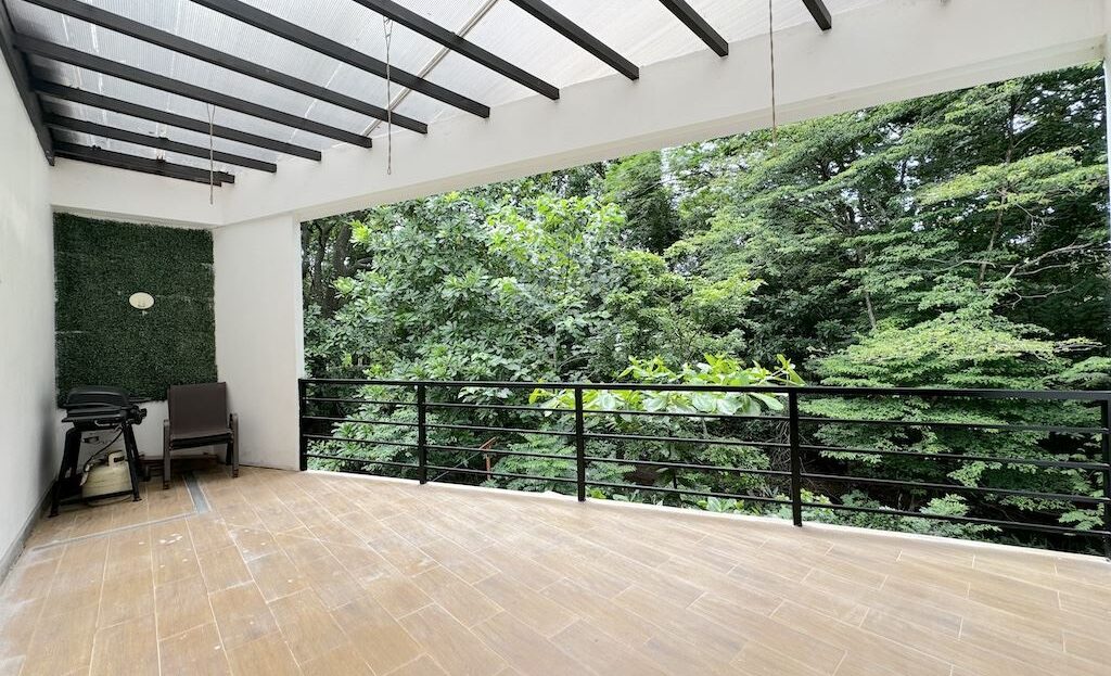 Casa Arboleda: This spacious three-bedroom, three-bathroom apartment boasts an open-plan living area that opens onto a beautiful terrace with breathtaking forest views. The unit also includes a laundry room.