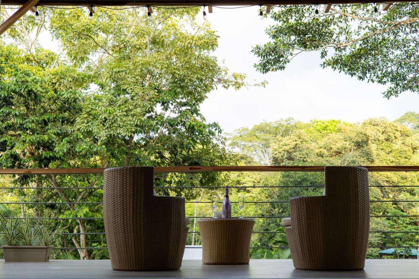 Spacious tree-level terrace, perfect for soaking in the jungle views and spotting wildlife like monkeys and scarlet macaws.