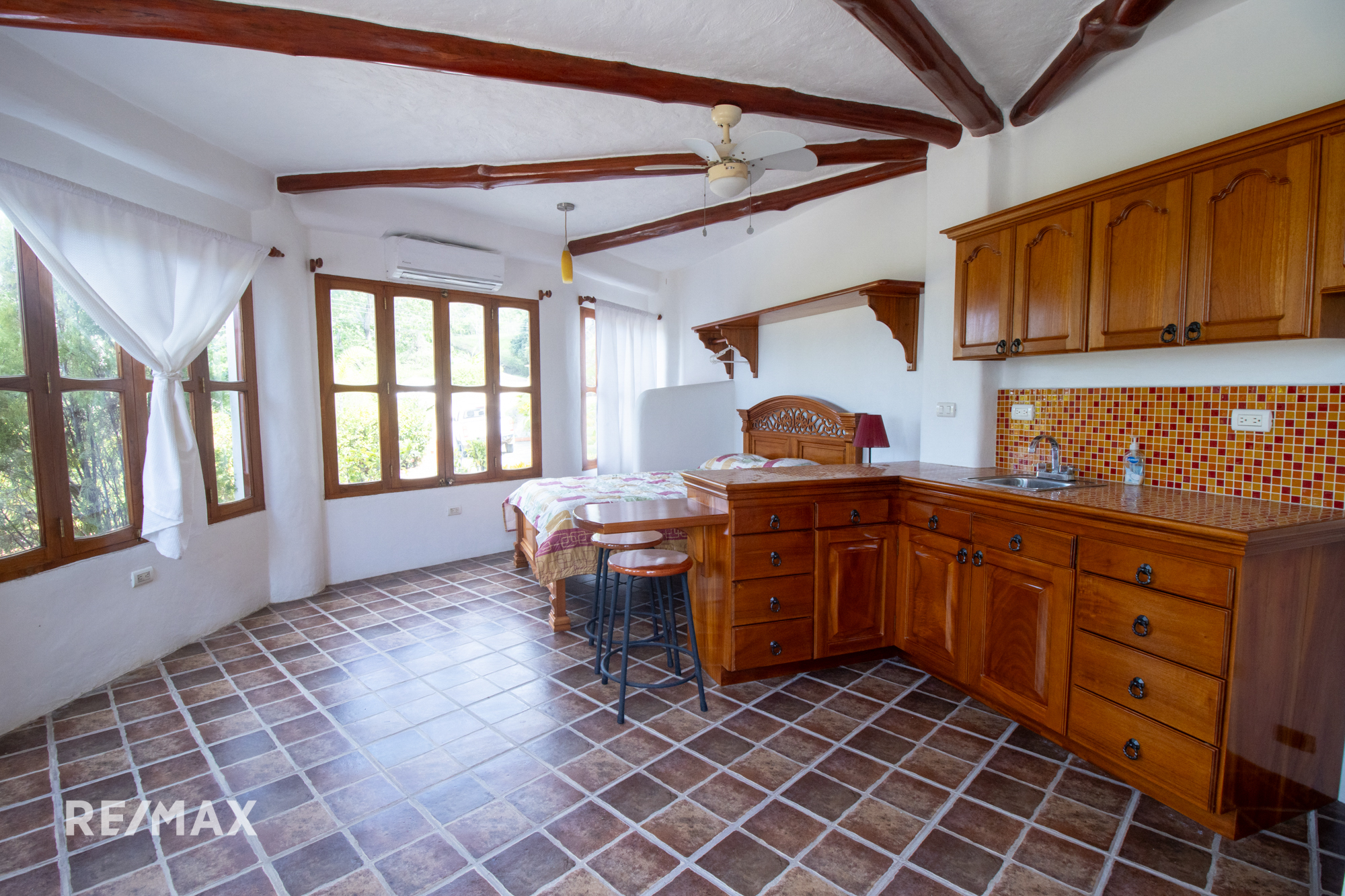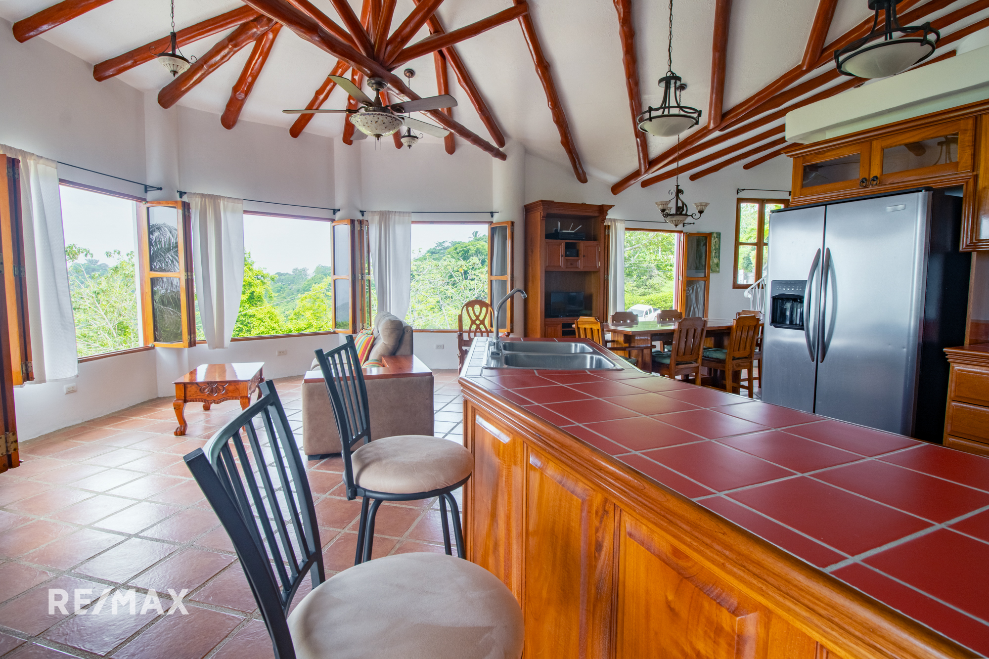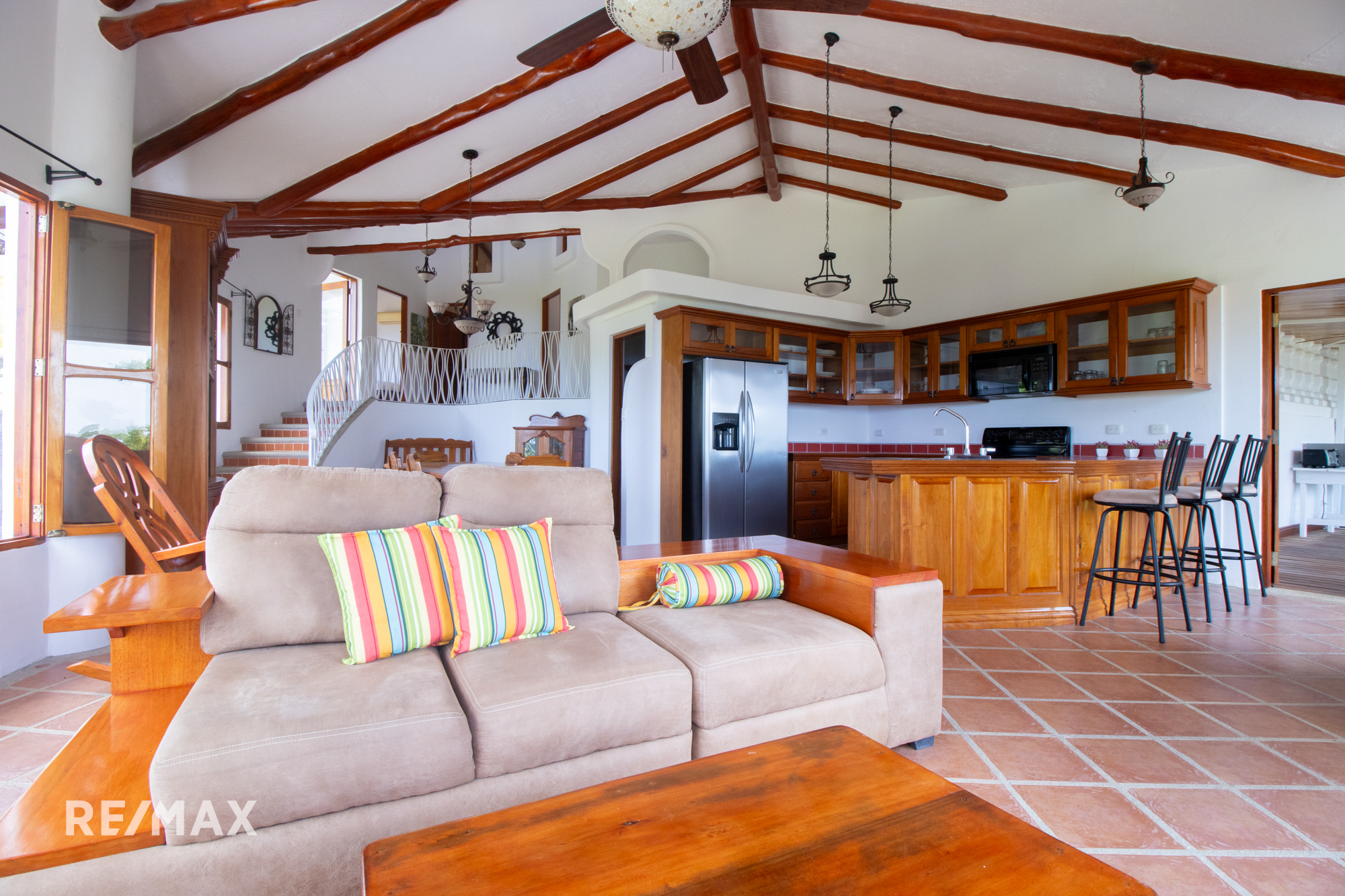 Natural materials such as pochote, teak, and cedar create a genuine and pleasant atmosphere in every room of this wonderful residence. A large 5.5m x 4m warehouse gives extra storage, and a patio with natural stones welcomes you to relax in the middle of nature’s splendor.