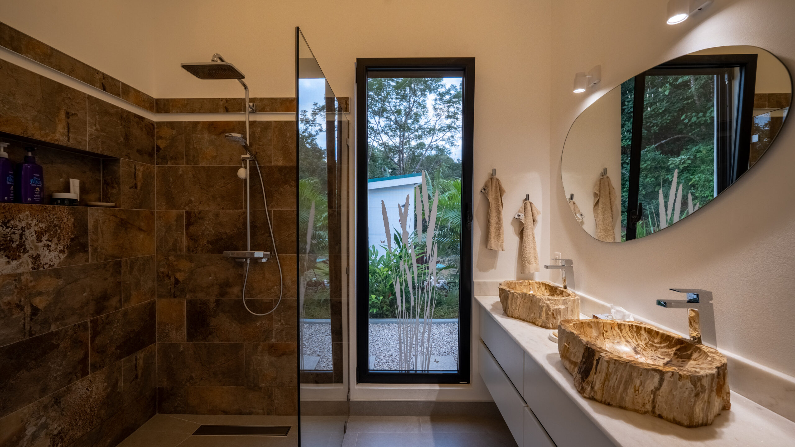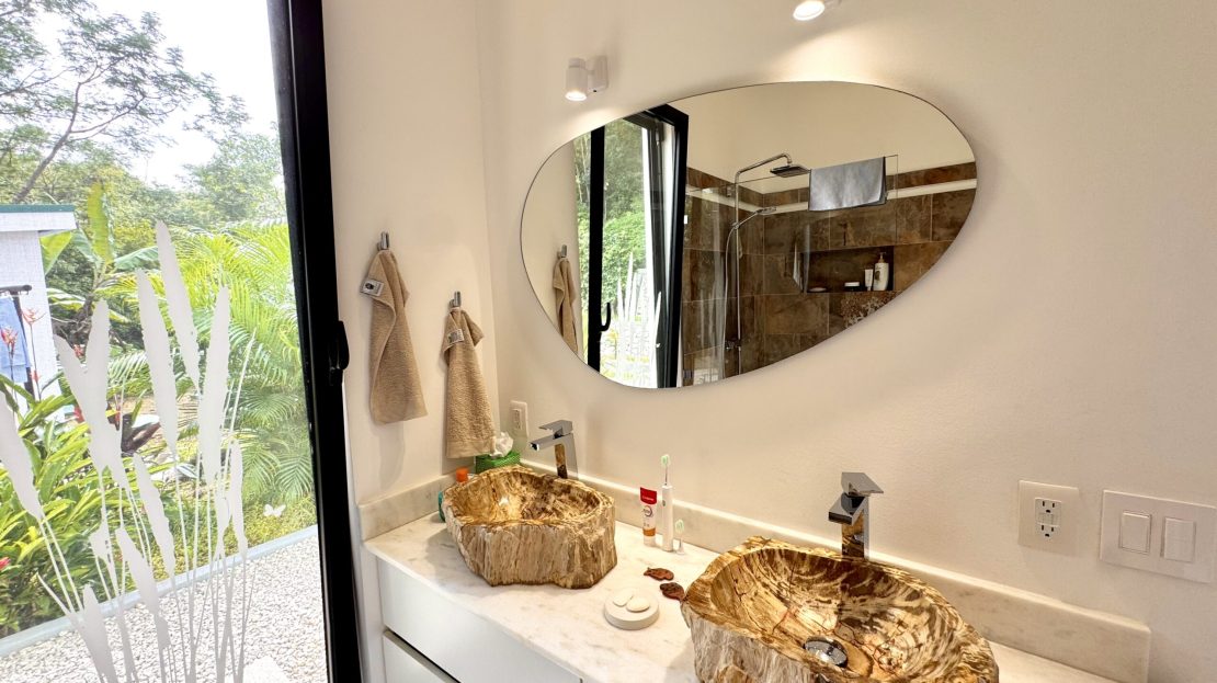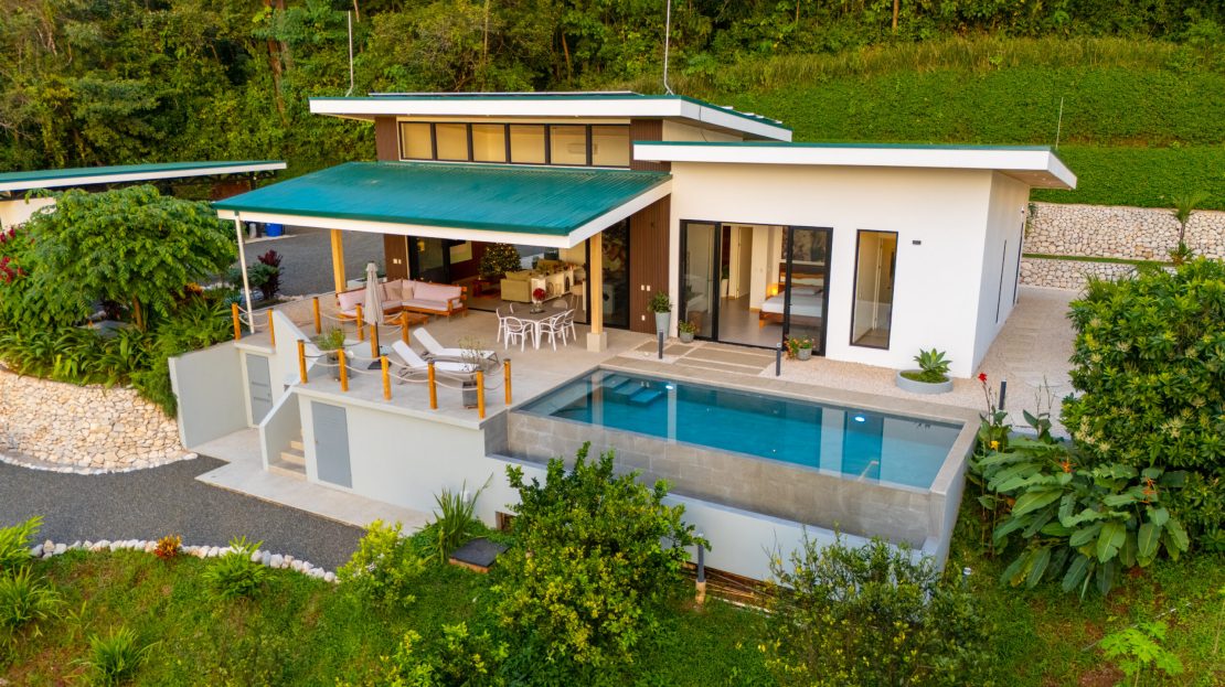 Set at 400 meters above sea level, the home enjoys a noticeably cooler mountain climate—typically 4 to 6 degrees lower than coastal temperatures—allowing for comfortable nights without the need for air conditioning. Surrounded by lush jungle, abundant wildlife, and scenic hiking trails leading to waterfalls and natural swimming pools, Casa Campeón offers a peaceful and authentic Costa Rican lifestyle within a secure environment.