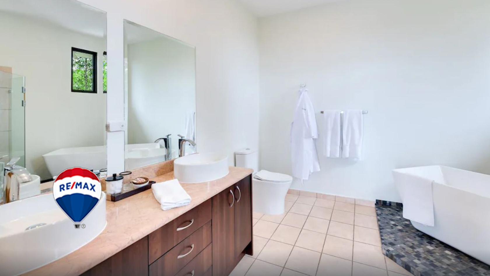 Entering the home, you are mesmerized by the huge atrium opening to the spectacular panoramic view of the Pacific Ocean, spanning all the way to the Nicoya peninsula, the Tarcoles River and the lush tropical coastline of Costa Rica’s central Pacific.