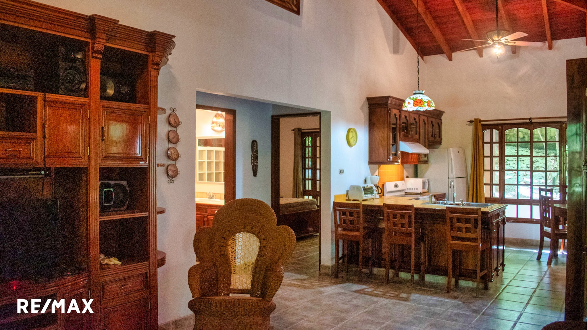 Sumérgete en el ambiente elegante de una casa completamente amueblada con magníficos acabados de alta calidad. El interior cuenta con hermosas carpinterías de cedro, potchote y teca, brindando un ambiente cálido y acogedor. El inmaculado paisaje cuenta con un exuberante jardín con cinco árboles centenarios y una gran cantidad de exuberante vegetación.