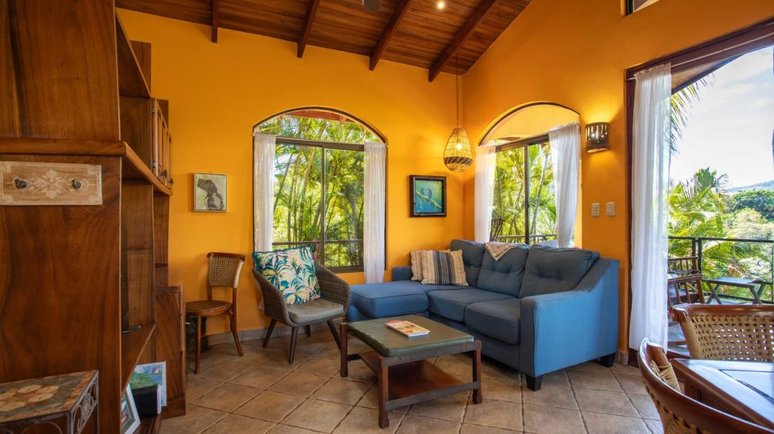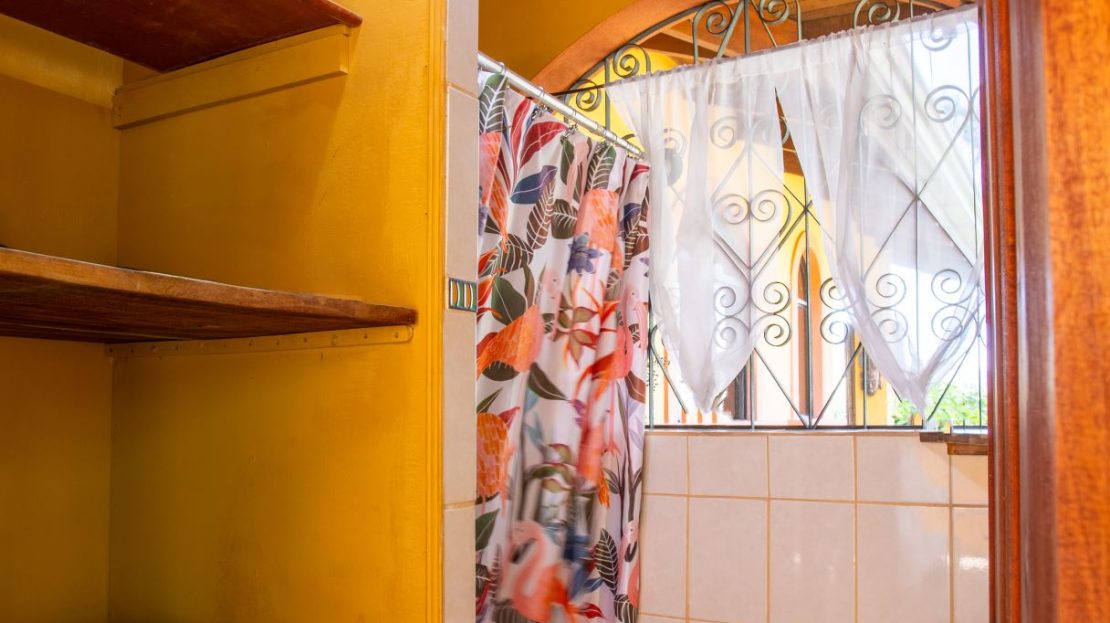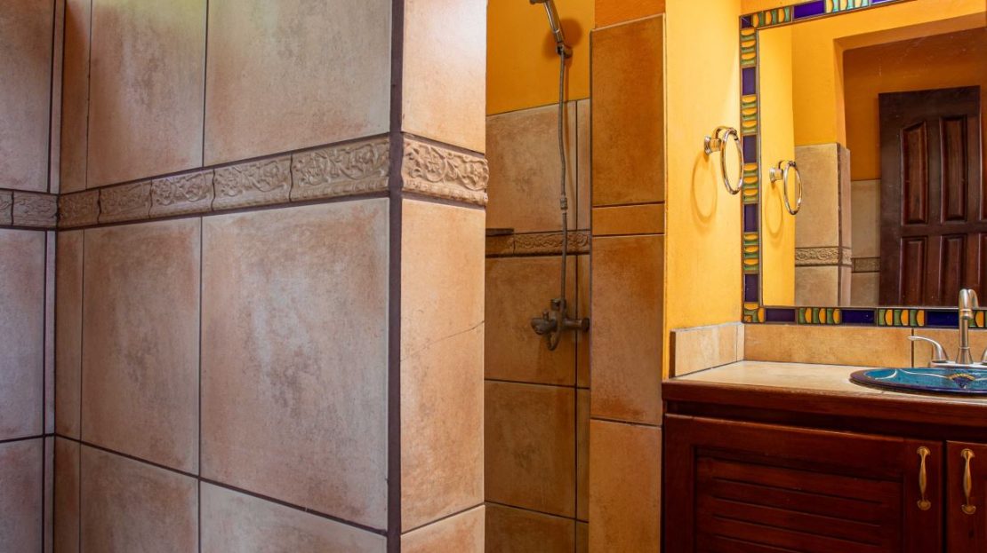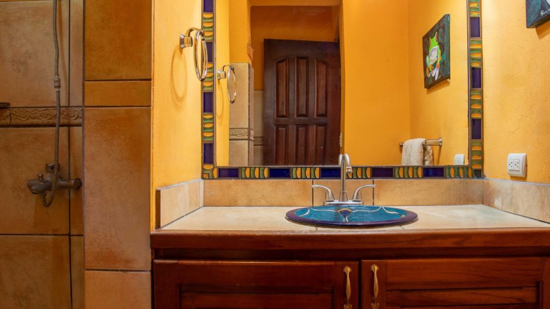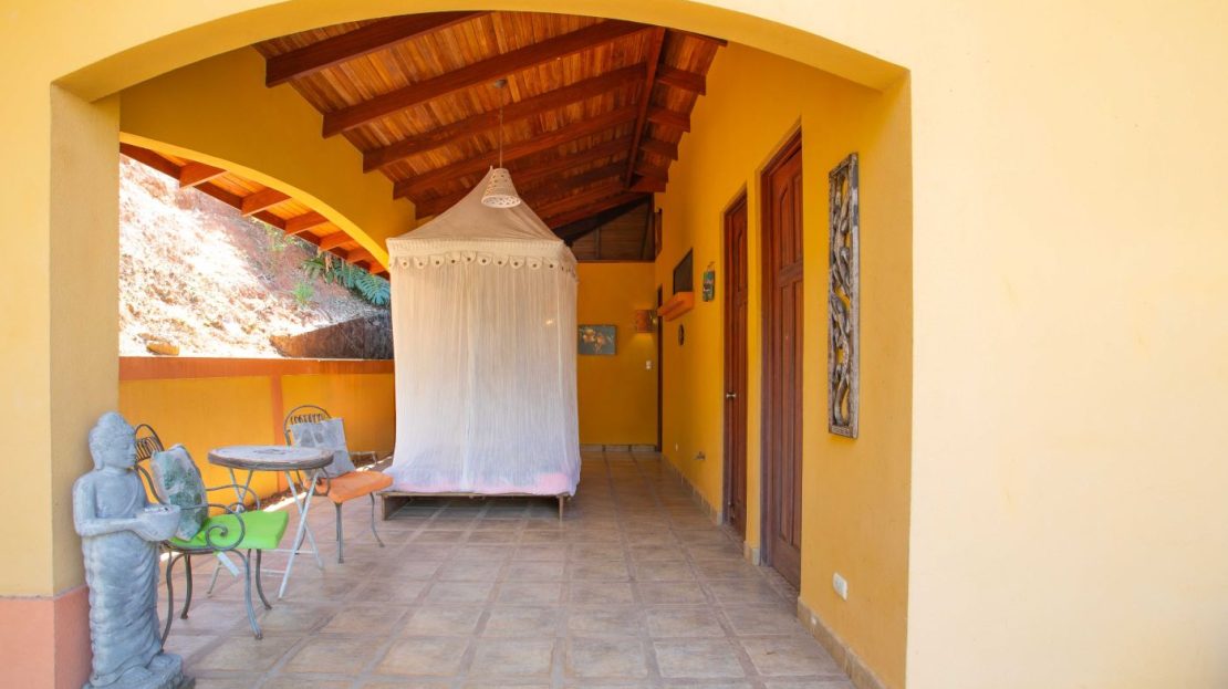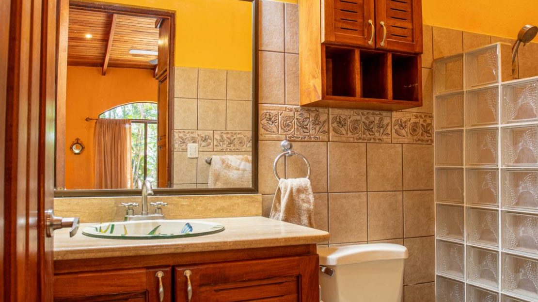 The Two Sisters Home (Casa de Las Hermanas) came to fruition when two sisters came to Costa Rica to create their dream homes and leaving room for the final grand home. They set the groundwork of landscaping, water, and electricity. The dream is waiting to be finished. Casa de Las Hermanas is a inviting 2 guest home property with the ideal spot for a larger home build. The entry of the property features a long private entrance where one can find the first smaller home that sits atop a small hill and has nice views of the area mountains and downtown Atenas. The 650ft2 (60 m2) studio home has artesenal woodwork throughout including the tall ceilings. There are Spanish Colonial finishes throughout. There is a kitchenette and a full bathroom. Adjacent is a small storage shed and a covered porch area with a front and back entrance into the home.