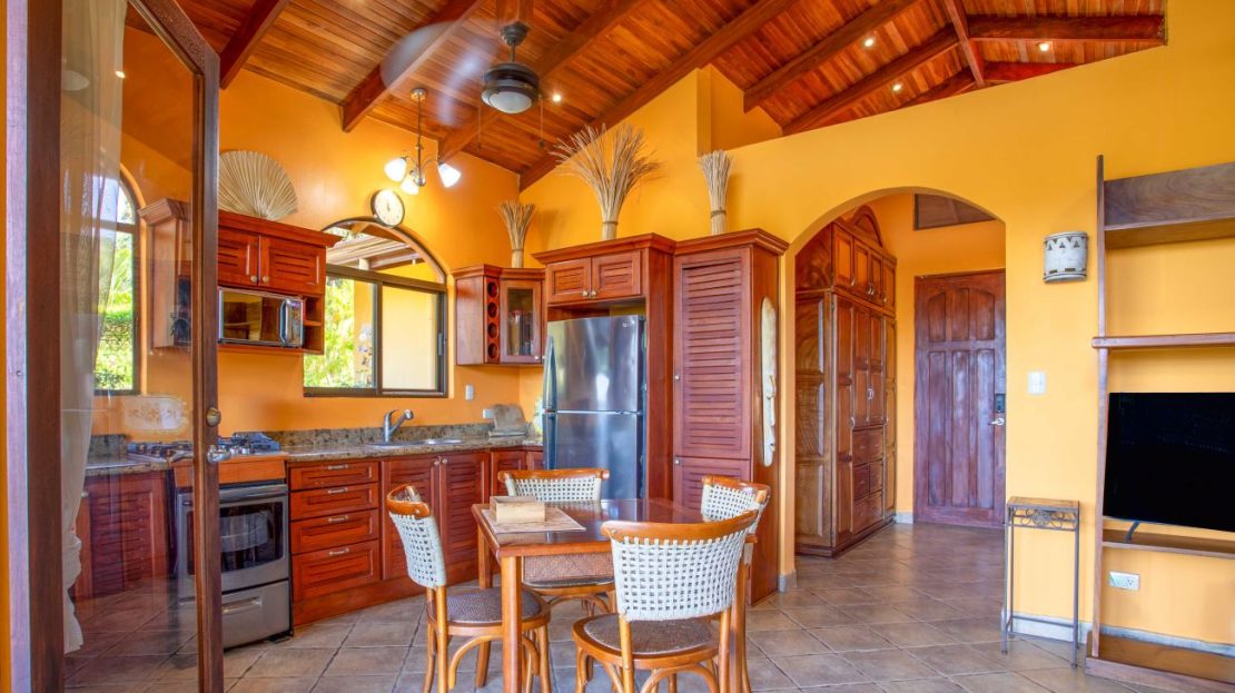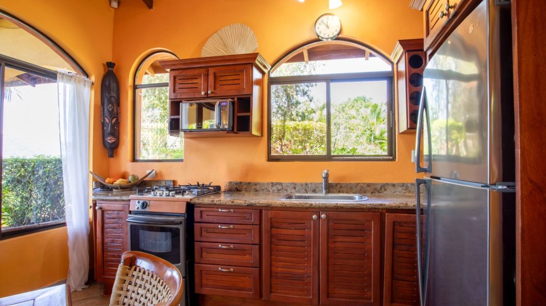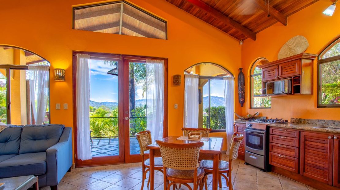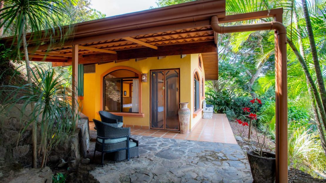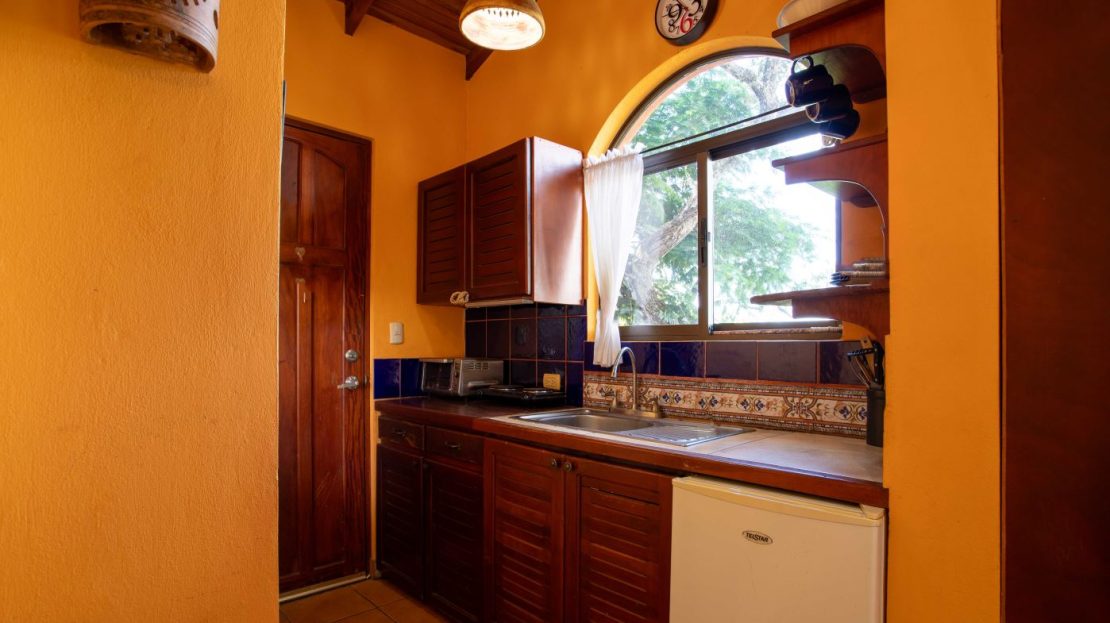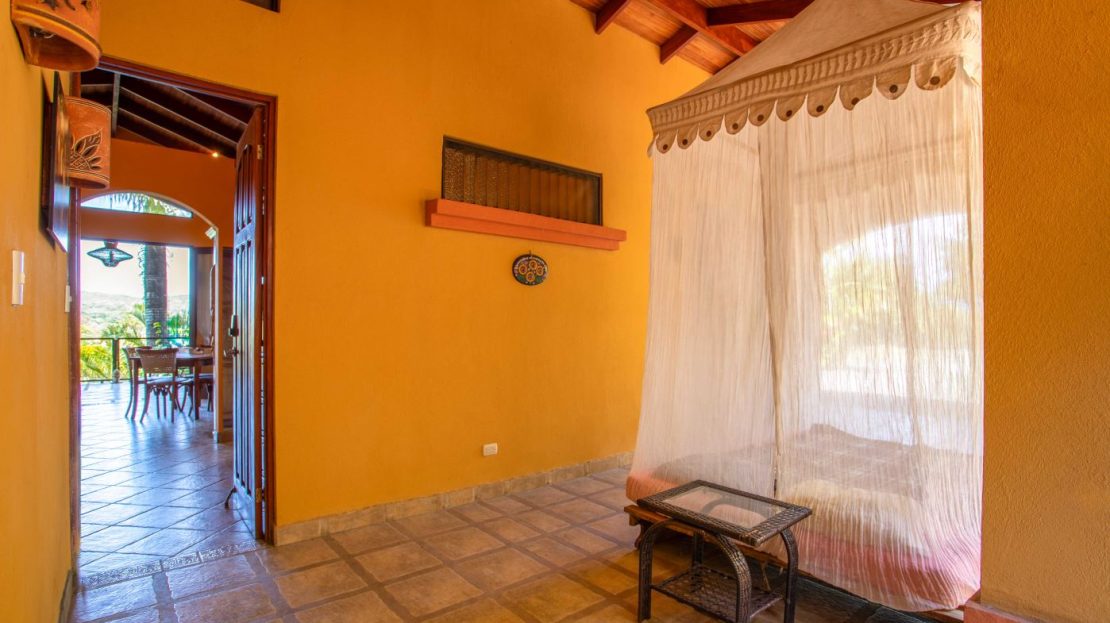 The Two Sisters Home (Casa de Las Hermanas) came to fruition when two sisters came to Costa Rica to create their dream homes and leaving room for the final grand home. They set the groundwork of landscaping, water, and electricity. The dream is waiting to be finished. Casa de Las Hermanas is a inviting 2 guest home property with the ideal spot for a larger home build. The entry of the property features a long private entrance where one can find the first smaller home that sits atop a small hill and has nice views of the area mountains and downtown Atenas. The 650ft2 (60 m2) studio home has artesenal woodwork throughout including the tall ceilings. There are Spanish Colonial finishes throughout. There is a kitchenette and a full bathroom. Adjacent is a small storage shed and a covered porch area with a front and back entrance into the home.