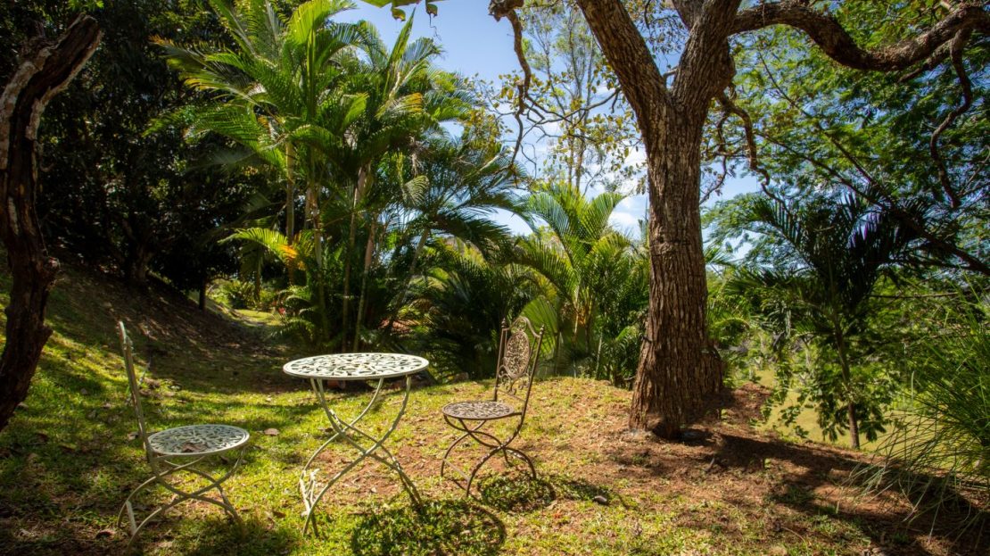 Más adentro de la propiedad, se encuentra una gran área de construcción con impresionantes vistas, ideal para cualquier tamaño de construcción que se ubicaría entre ambas casas con una gran área plana. La propiedad desciende por debajo de esta área y también tiene una parte superior del lote por encima de esta área de construcción. La propiedad está llena de exuberantes jardines tropicales maduros en todas partes.