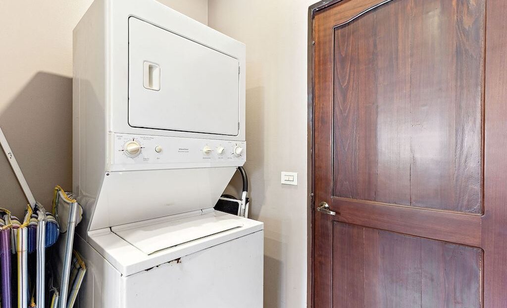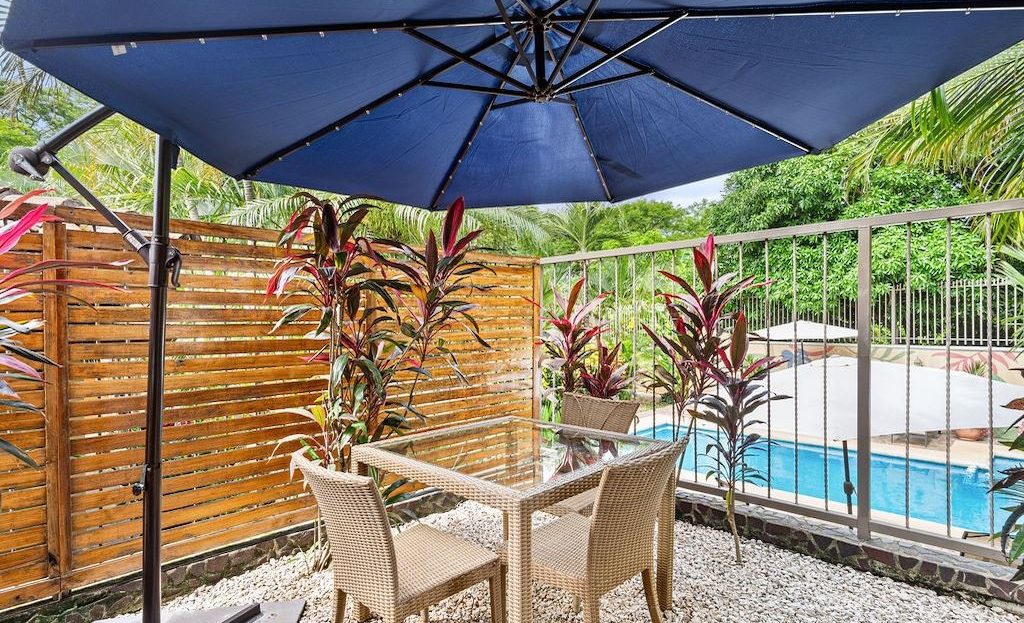 Step outside to your large, covered private patio, perfect for lounging or dining al fresco.The villa is located in an intimate 4-home complex zoned as a condominium, featuring a lush shared garden and inviting pool—a serene setting to unwind after a day in the sun. Additional amenities include a private washer/dryer and a reserve water tank for added peace of mind.