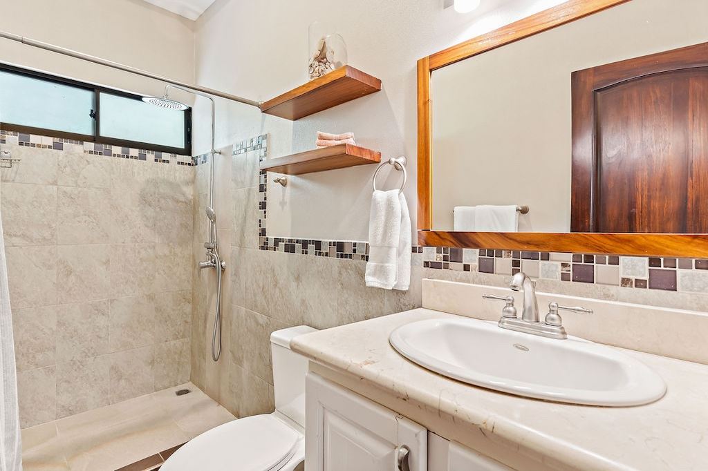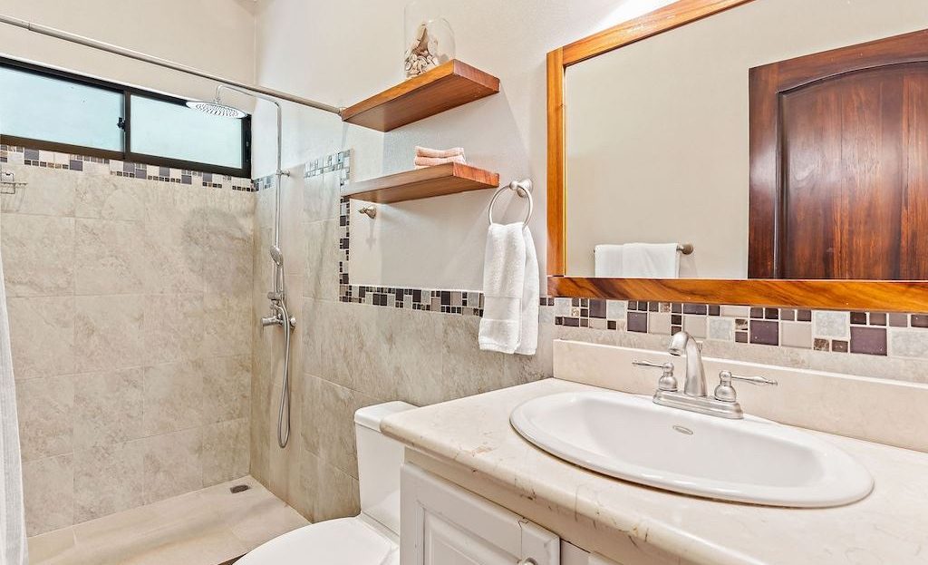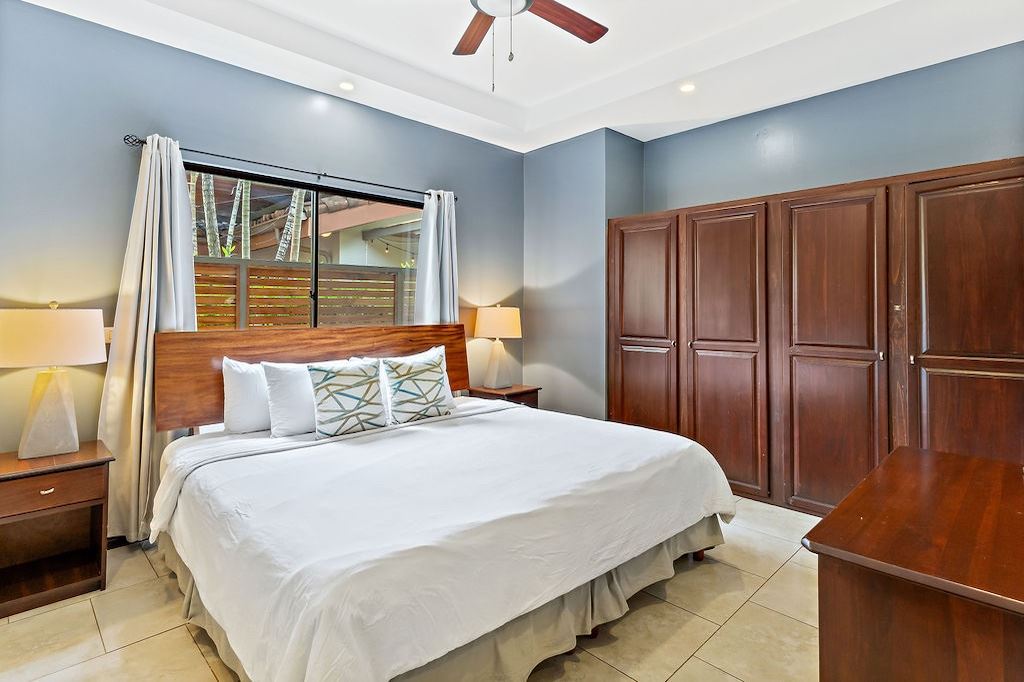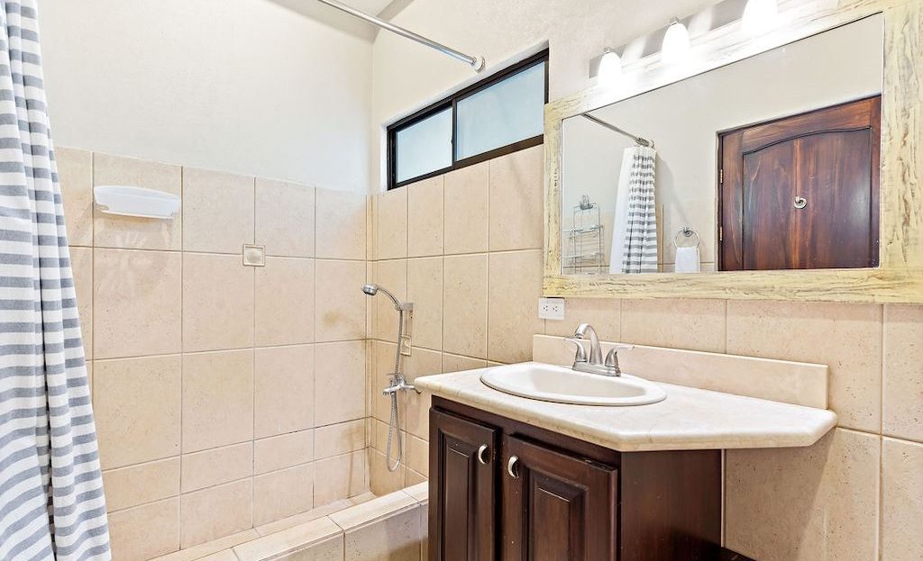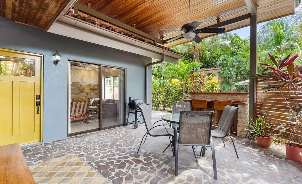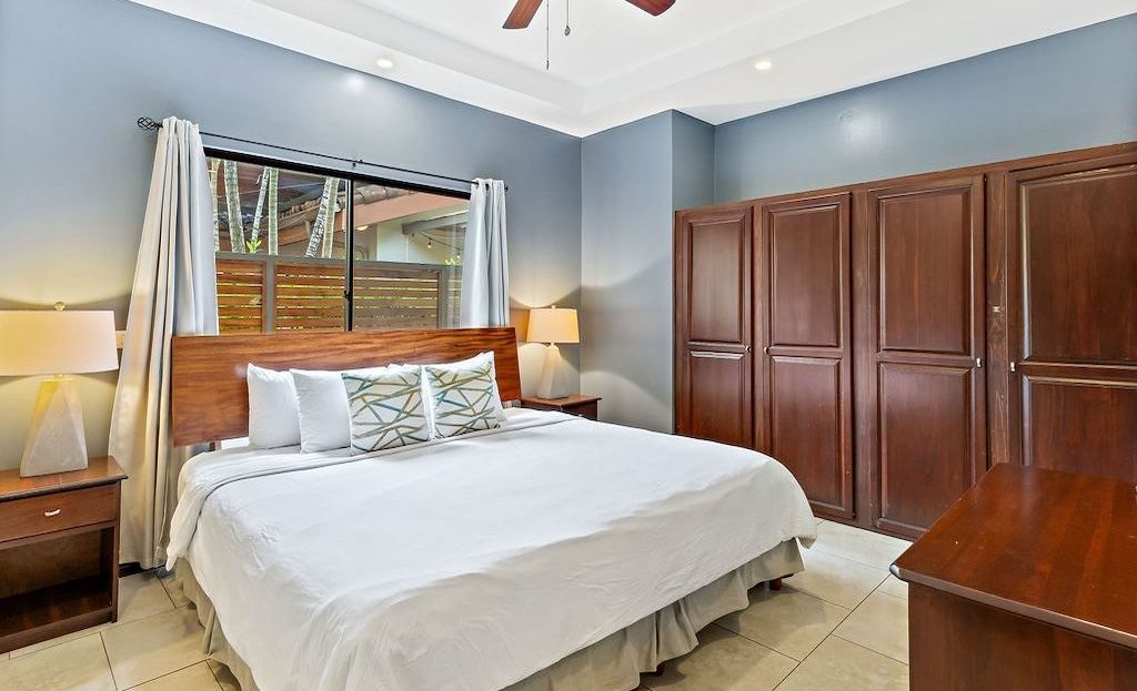 Oasis in the Heart of Tamarindo – Casa Ela #4 — your perfect home away from home for a relaxing and memorable getaway in the vibrant town of Tamarindo. This spacious and beautifully furnished 2-bedroom, 2-bathroom home comfortably sleeps up to six guests, making it ideal for families. The primary bedroom features a king bed, the second has a queen and large wooden bunk bed with storage for additional guests. With plenty of closet space, everyone can settle in and feel right at home.