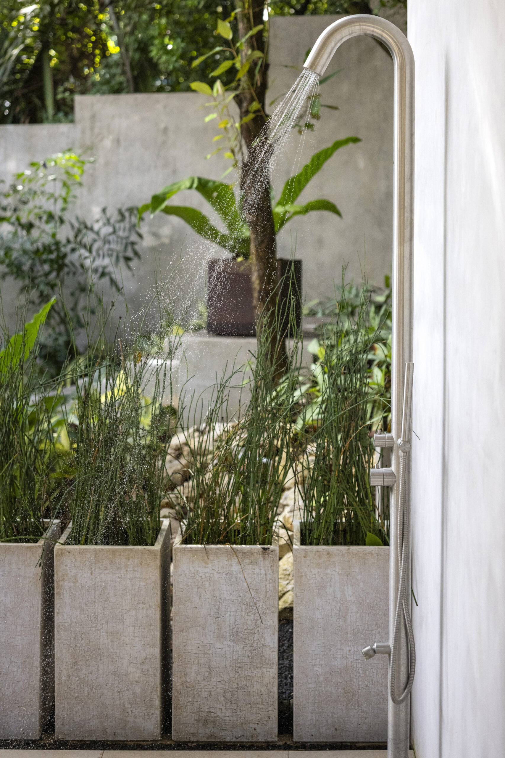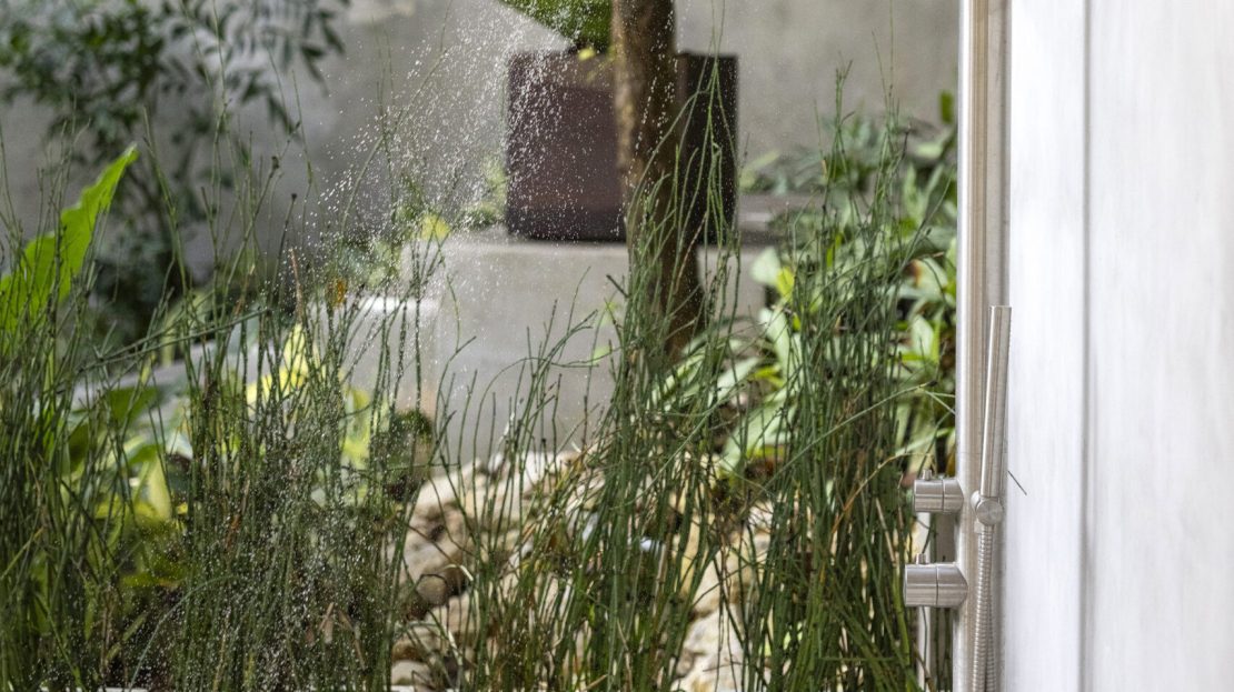 Greywater irrigation tank and pump system to maintain the lush gardens sustainably.