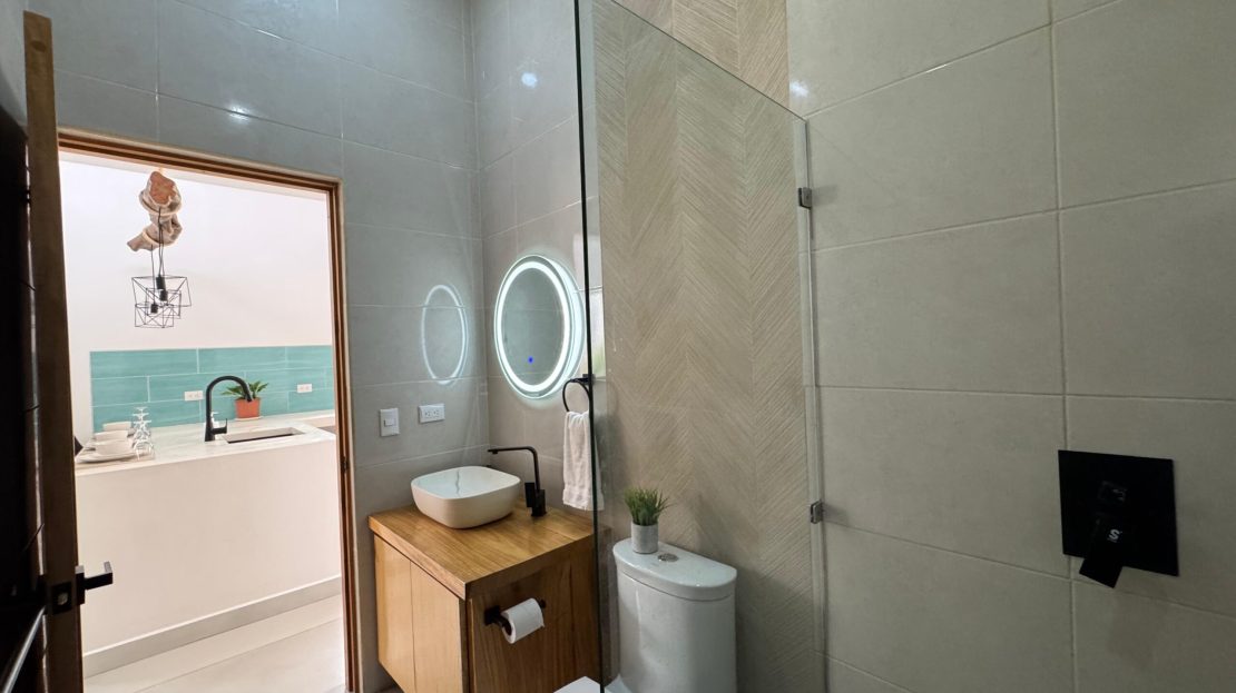 La casa principal ofrece 3 habitaciones luminosas y 2 baños completos, con construcción sólida y acabados contemporáneos. Además, cuenta con un estudio independiente totalmente equipado en la planta alta, con su propia cocina y baño privado, perfecto para visitas, alquiler o un espacio de trabajo privado.