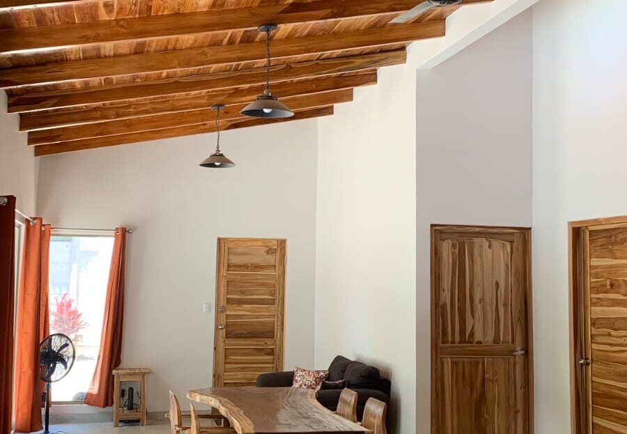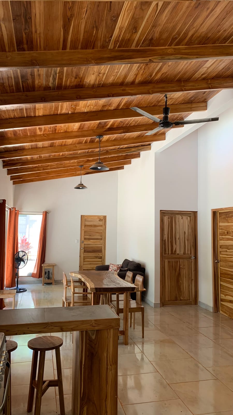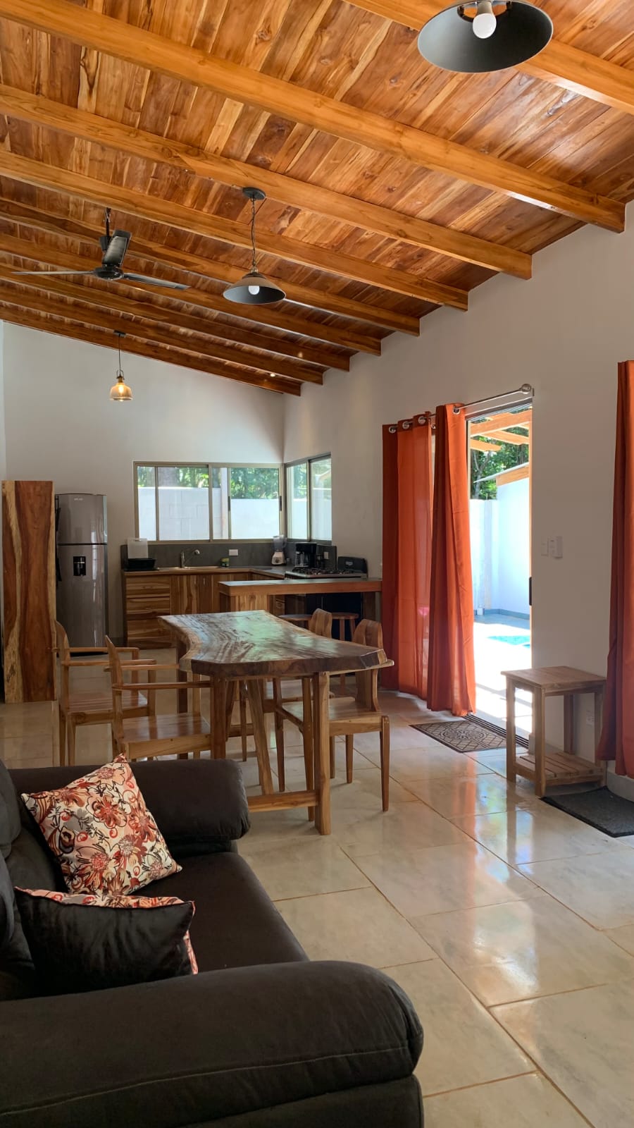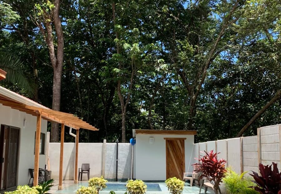 CASA JUNGLE UNO is located in a secure community with friendly neighbors and a Community Neighborhood Watch Program, this air-conditioned home boasts high ceilings and stunning teak wood accents that create a warm and inviting ambiance. Step outside to enjoy your private pool—ideal for cooling off after the beach and entertaining family and friends.