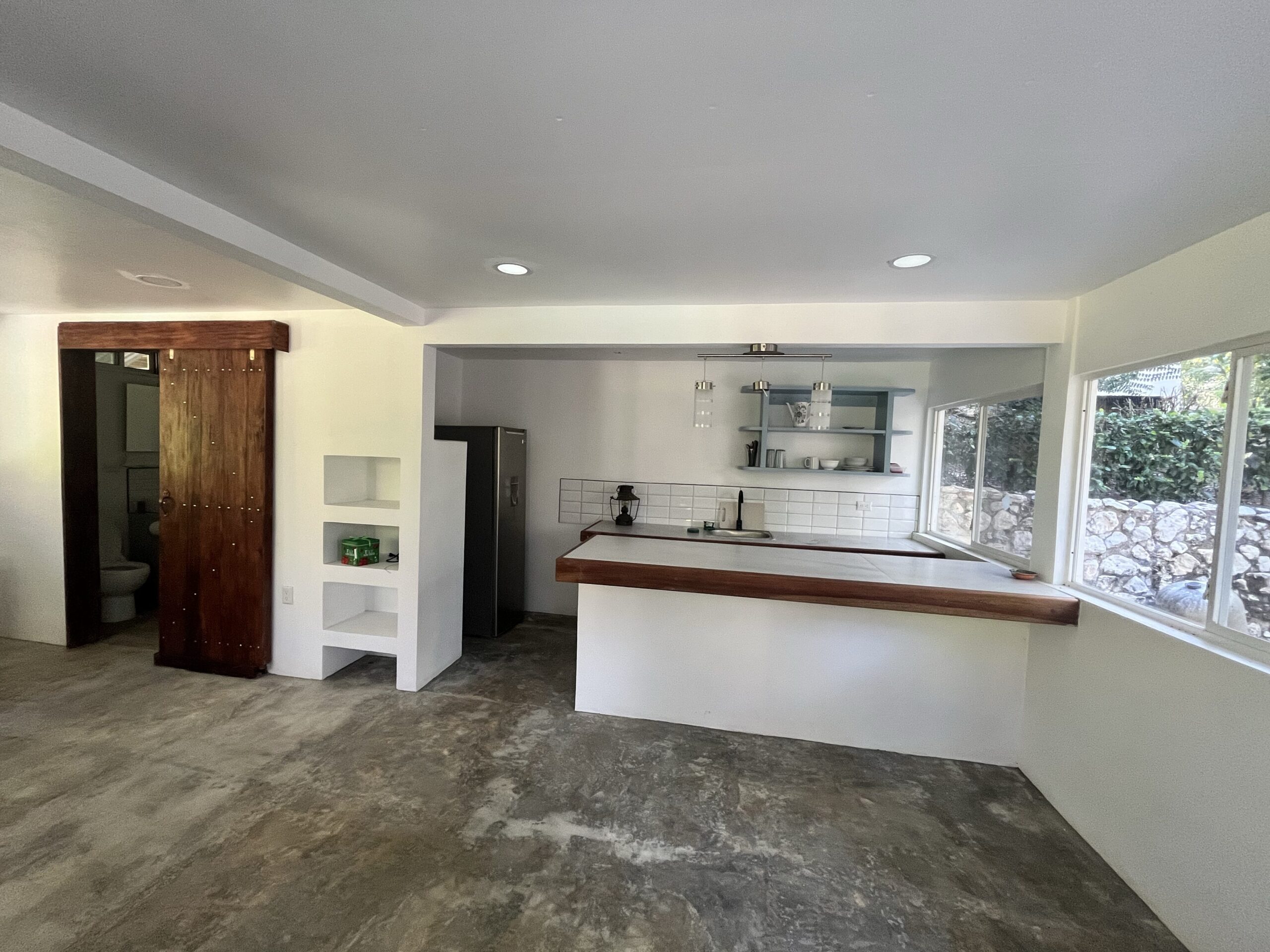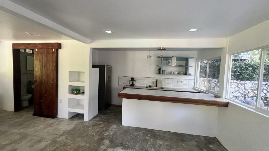 The property also features convenient outdoor parking and a beautiful garden planted with mature fruit trees, including banana, papaya, orange, and lemon trees, adding to the tropical lifestyle appeal.