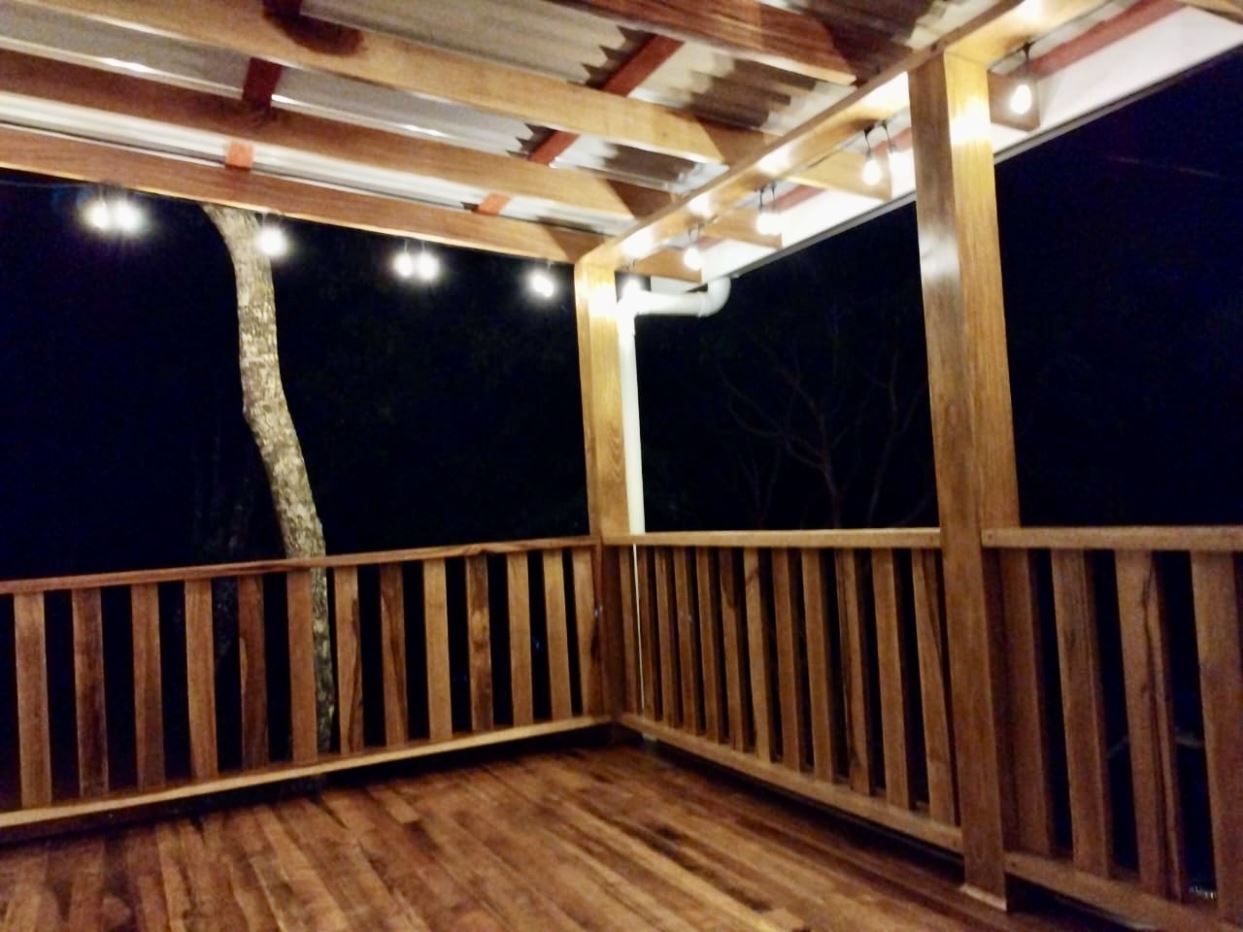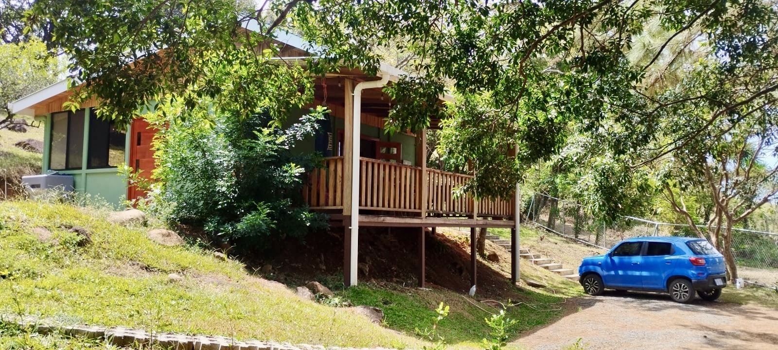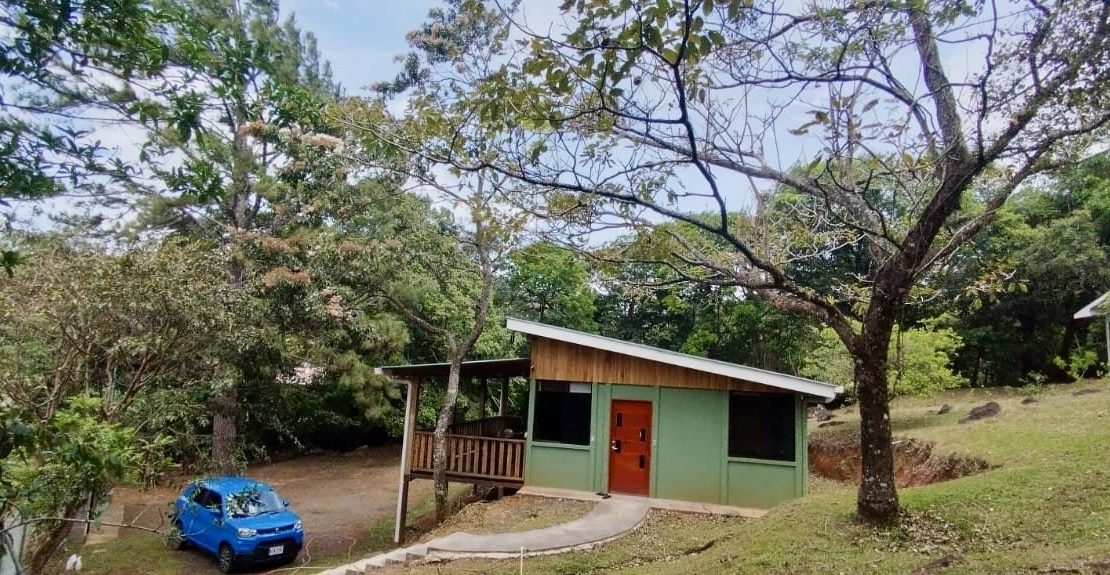 Casa principal de diseño acogedor con dos habitaciones, un baño completo y un hermoso balcón abierto para contemplar la magia del bosque, sentir la brisa fresca y deleitarse con el canto de las aves.