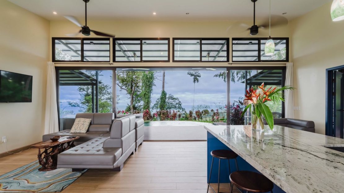 Welcome to Casa Turi-Uha with 1.24 acres of land perched on the front ridge of the Hills of Portalon community with panoramic ocean views. This is a 4 bedroom home with 3 full bathrooms, infinity pool, custom kitchen, 2 vehicle garage and landscaped with over 20 mature fruit bearing trees. As you enter the property via the automatic gated entry-way, you will be memorized by the National Geographic like views. The house sits 1,000 feet above sea level with incredible mountain views facing the East to enjoy the morning sun-rises and to the West you have Pacific ocean views with mesmerizing sunsets and views that stretch from Manuel Antonio National Park to the famous surf break of Dominical. The house was designed and completed in 2021 to capture the cool mountain breezes as they come off the coast and flow through thehome to provide the perfect balance of cross ventilation & healthy living.