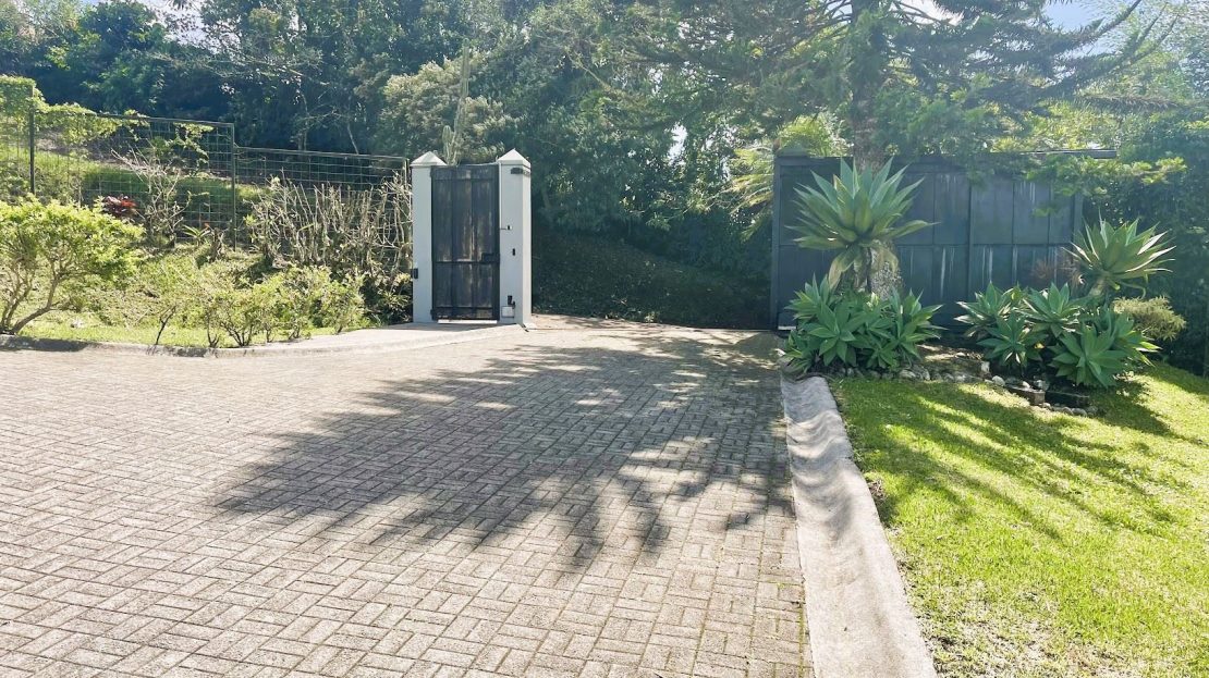 Salga al jardín cuidadosamente diseñado, donde la tranquilidad y la belleza natural se entrelazan. La entrada con portón eléctrico brinda seguridad y tranquilidad para usted y sus seres queridos.
